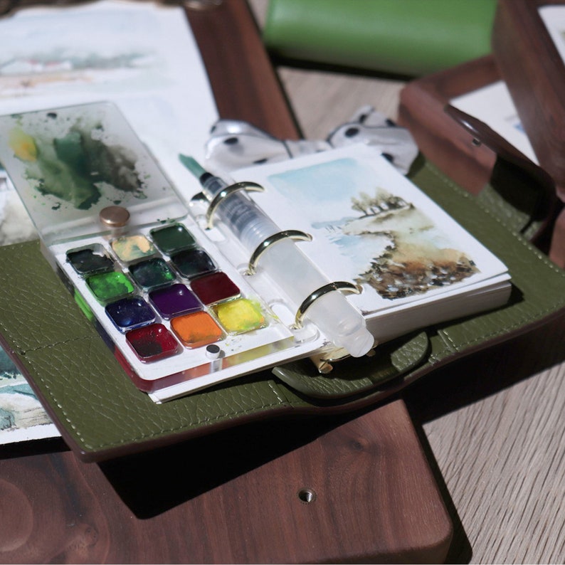 Kreativität überall! Dieses niedliche Yamobi Mini Aquarell Set passt in jede Handtasche und macht dich zum mobilen Künstler. Egal ob im Park, im Café oder auf Reisen - hier kannst du deine Inspiration sofort festhalten.\\n\\nDas Set enthält alles, was du brauchst: 12 intensive Aquarellfarben, 7 verschiedene Pinsel, ein Skizzenbuch und eine praktische Büroklammer zum Fixieren des Papiers. Alles sicher verpackt in einer eleganten Walnussholz-Palette.\\n\\nDie Maße im Detail:\\n- Palette: ca. 2,36 Zoll\\n- Skizzenbuch: ca. 2,56 Zoll\\n- Pinsel: 7,28 Zoll lang\\n- Material: Walnussbaumholz + Metall\\n\\nEinfach das Skizzenbuch in eine Hand nehmen, mit der anderen malen - fertig! Keine Staffelei, keine große Ausrüstung nötig.\\n\\nPerfekt für:\\n- Urban Sketching\\n- Reisetagebücher\\n- Schnelle Skizzen unterwegs\\n- Kunststudenten\\n- Therapeutisches Malen\\n\\nEin wunderbares Geschenk für alle kreativen Seelen - ob Anfänger oder Profi!
