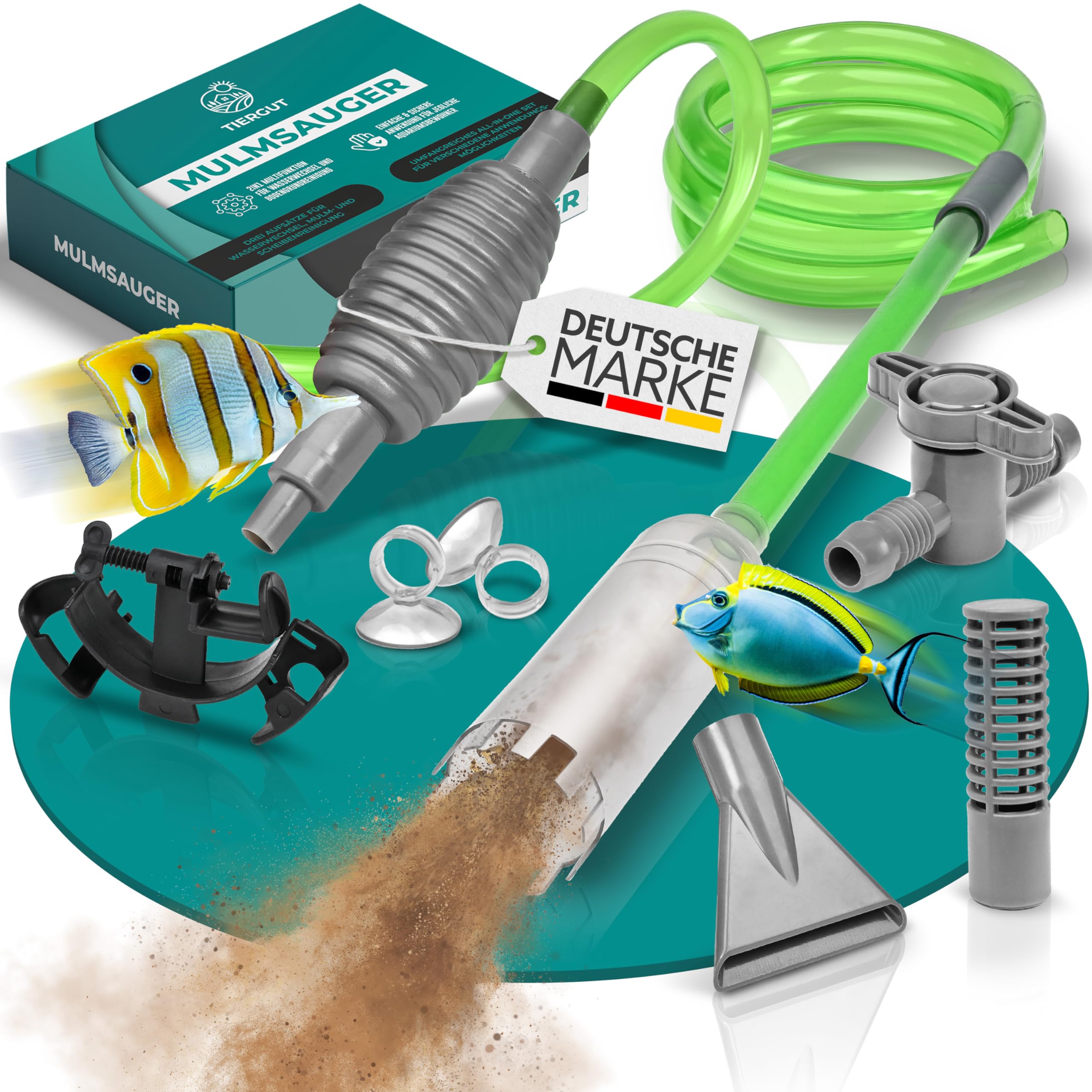 • WASSERHELD Mulmsauger Aquarium - 3 Aufsätze, 3m Schlauch Mit Ventil Inkl. Buch