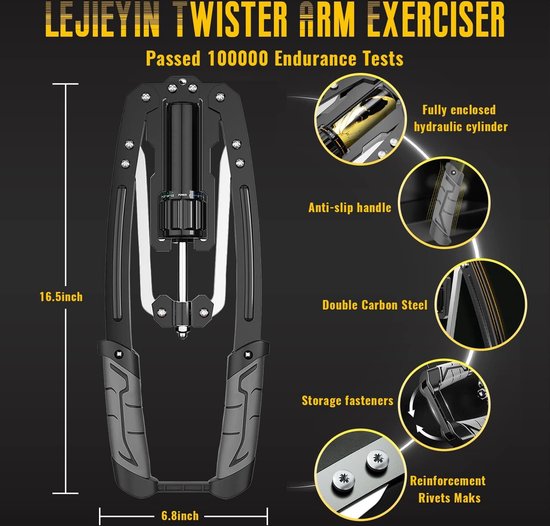Dieser Twister Armtrainer ist ein echtes Allround-Talent für dein Home-Workout! Mit verstellbarem Widerstand von 30-50kg ist er perfekt für Anfänger und Fortgeschrittene. Die U-förmige Metallfeder mit Lederummantelung schützt deine Hände, während die rutschfesten Schaumstoffgriffe für comfortablen Halt sorgen. Du trainierst damit nicht nur Arme und Brust, sondern auch Schultern, Rücken und Beine - ein echtes Ganzkörpertraining! Einfach zusammengeklappt und platzsparend verstaut, perfekt für zu Hause, Büro oder unterwegs. Mit drei Widerstandsstufen kannst du dein Training genau an deine Fitness anpassen. Ideal zum Muskelaufbau und für mehr Ausdauer. Einfach mal ausprobieren - deine Muskeln werden's dir danken!