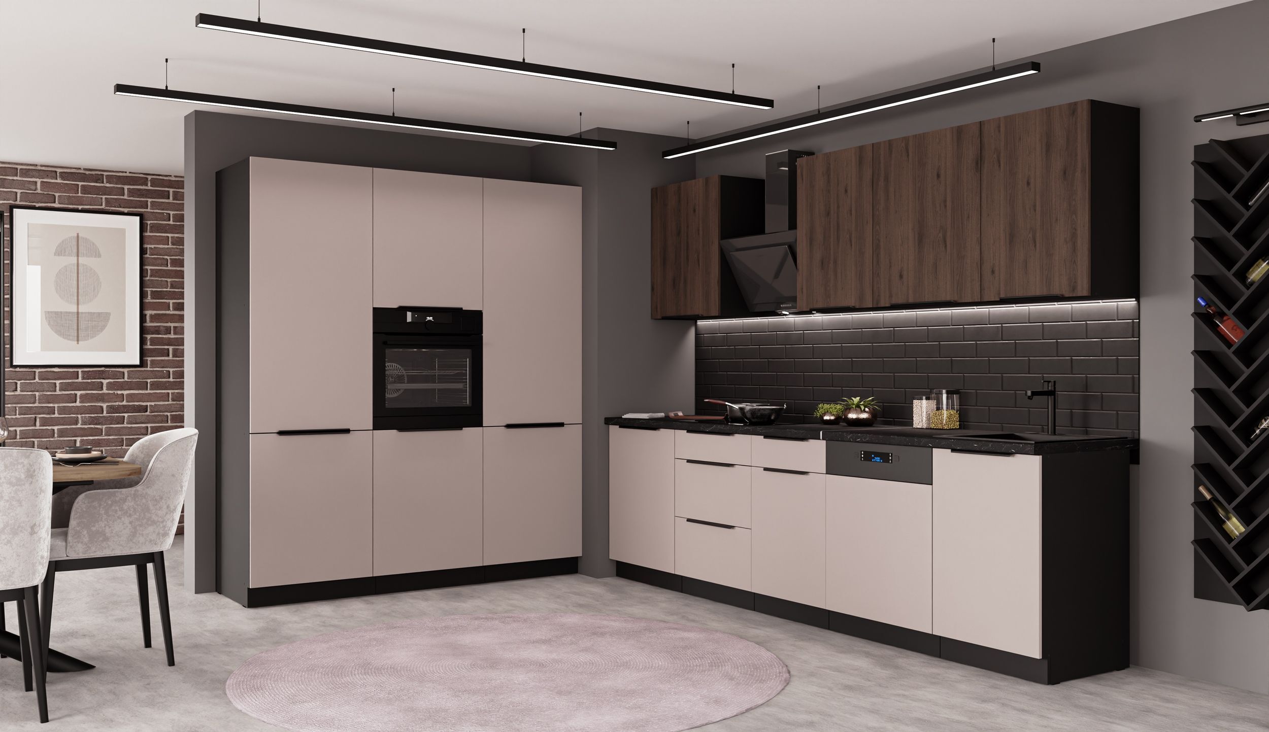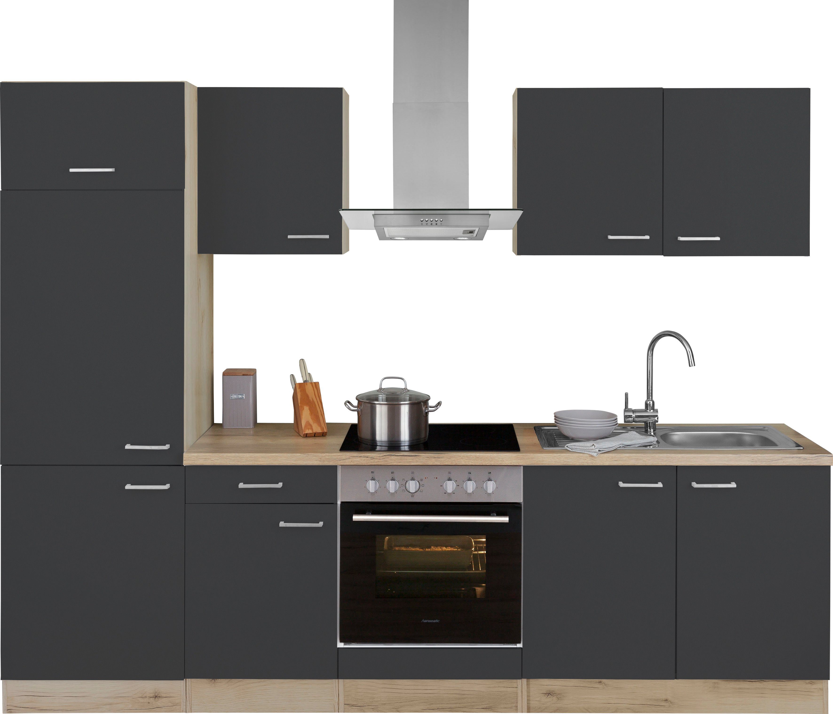Traumküche zum Selberaufbauen! Die Arona Eckküche im modernen Mix aus Kaschmir beige matt und schwarz matt ist ein echter Hingucker. Mit den Schenkelmaßen 280x270cm und 60cm Tiefe bietet sie unendlich viel Stauraum für all deine Küchenutensilien. Die Fronten sind aus laminierter Spanplatte, der Korpus in schwarz matt, und die 38mm starke Arbeitsplatte in Marmor-Optik ROMA NB macht das Gesamtbild komplett. Alle Türscharniere und Schubladen haben Softclose-Funktion - kein lautes Zuknallen mehr! Im Lieferumfang ist alles enthalten, was du brauchst: Spülenunterschrank, Auszugunterschrank, Eckunterschrank, Hochschränke, Hängeschränke und die Arbeitsplatten. Achtung: Ohne Elektrogeräte und Spülbecken - die musst du separat besorgen. Die Küche wird zerlegt geliefert, ist aber mit unserer Montageanleitung gut zu schaffen. Perfekt für alle, die sich eine individuelle Küche wünschen ohne den teuren Fachhandel. Du kannst sie später sogar mit weiteren SIENA/MONZA/ARONA Schränken erweitern. Einrichtung macht Spaß - vor allem wenn am Ende so eine tolle Küche dabei herauskommt!