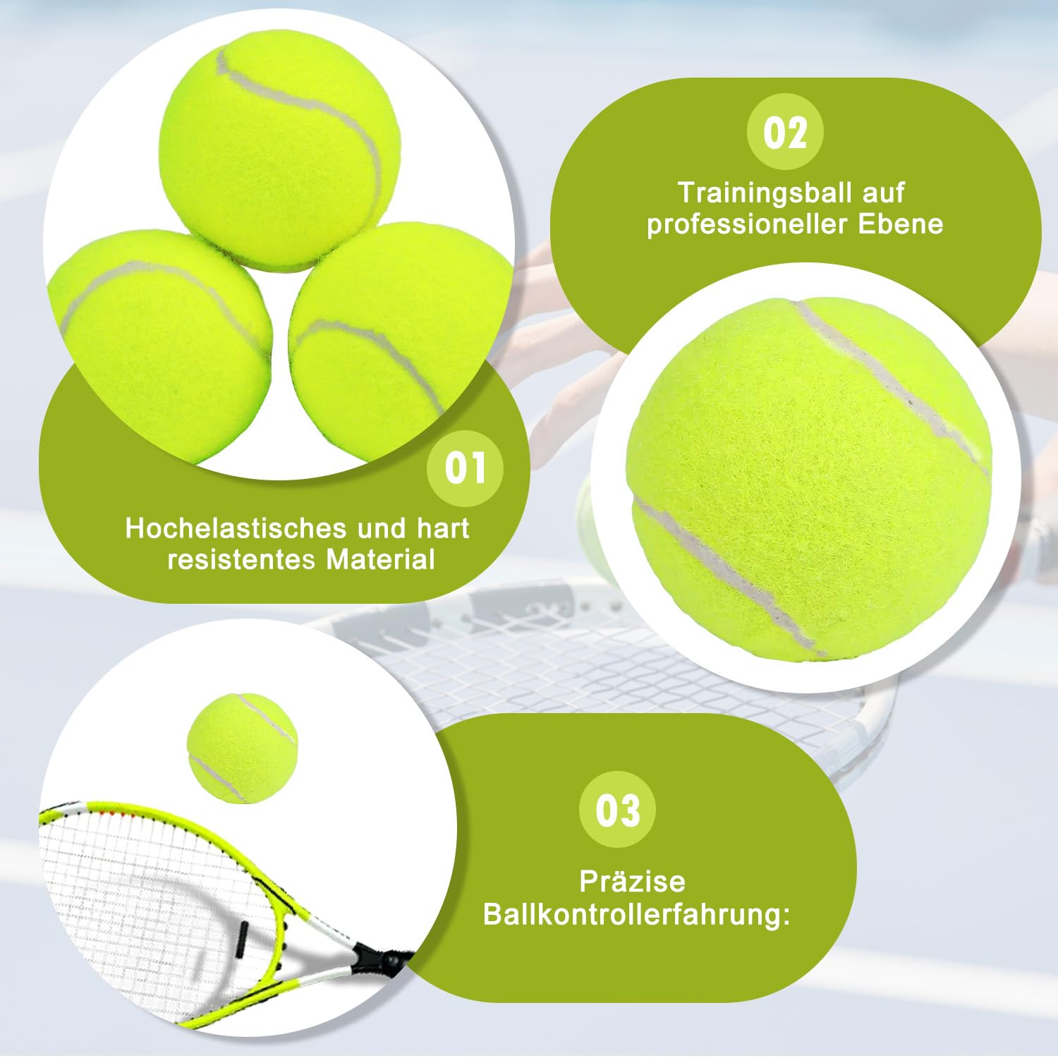 Aufschlag! Dieses Tennisball-Set ist perfekt für junge Spieler und Anfänger! 3 hochwertige Tennisbälle im praktischen Netzbeutel - einfach zu transportieren! Mit 6,3cm Durchmesser - ideal für Kinderhände! Aus speziellem Gummi-Material - hohe Elastizität und langlebig! Perfekt für den Tennisunterricht, Schulen oder das Training zu Hause! Der Luftdruck ist gleichmäßig - stabile Flugbahn für bessere Ballkontrolle! Starke Verschleißfestigkeit - hält auch intensivem Training stand! Fördert die Technik - besseres Gefühl für den Ball! Auch super für Hunde - aber Achtung, nicht für aggressive Kauer! Macht Tennislernen zum Spaß - nicht zur Frustration! Die Filzoberfläche ist qualitativ hochwertig - kein Abrieb! Perfekt für Freizeit-Tennis oder den ersten Unterricht! Dein Kind wird schnell Fortschritte machen - mit den richtigen Bällen! Einfach den Beutel einpacken und zum Training mitnehmen!