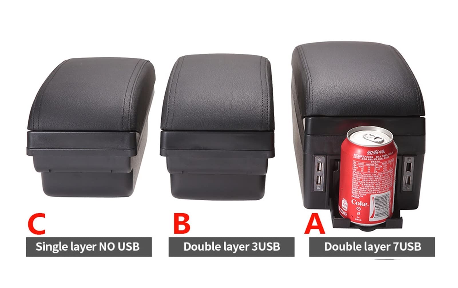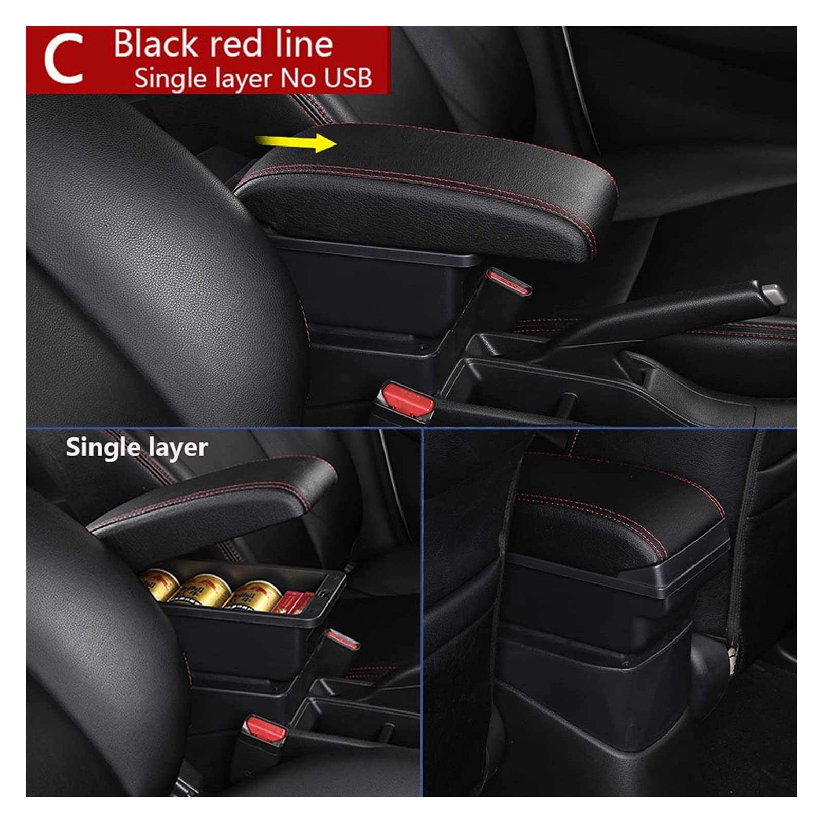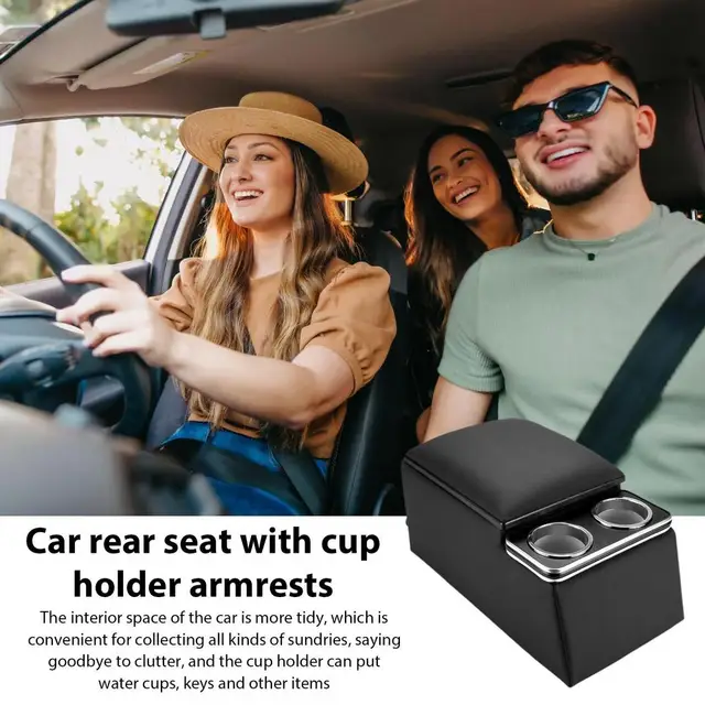 Die Armlehne ist aus hochwertigem PU-Leder, staubdicht und wasserdicht. Zweischichtiger Stauraum bietet Platz für Kleinkram, und hinten gibt's verdeckte Becherhalter.