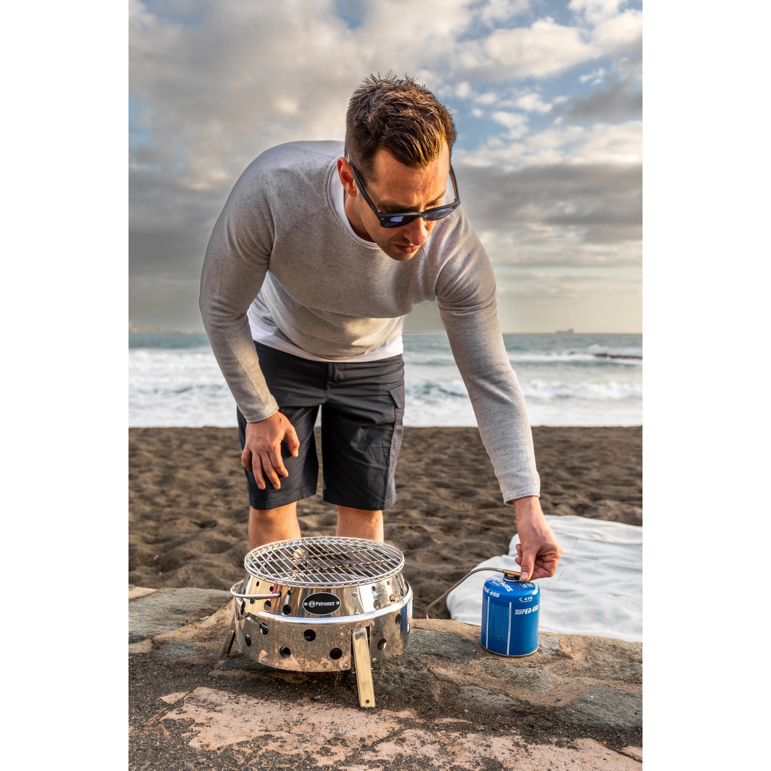 Das komplette Outdoor-Koch-Erlebnis! Der Petromax Atago Gasgrill ist ein wahres Multitalent für Garten, Camping und Balkon. Inklusive praktischer Umluftkuppel für knusprige Pizzen und aromatisches Smoken. Die Kuppel sorgt für perfekte Hitzeverteilung - egal ob Grillen, Backen oder Schmoren. Mit robuster Transporttasche aus Ripstop-Gewebe für sicheren Transport und platzsparende Aufbewahrung. Einfache Handhabung - schnell aufgebaut und einsatzbereit. Perfekt für gemütliche Grillabende mit Freunden oder Familienfeiern. Auch als wärmende Feuerstelle an kühleren Abenden nutzbar. Petromax Qualität made in Germany - langlebig und zuverlässig. Erlebe vielfältige Kochmöglichkeiten unter freiem Himmel! Ob Steak, Pizza oder Gemüse - dieser Grill meistert alles. Dein Ticket zum perfekten Outdoor-Kocherlebnis!