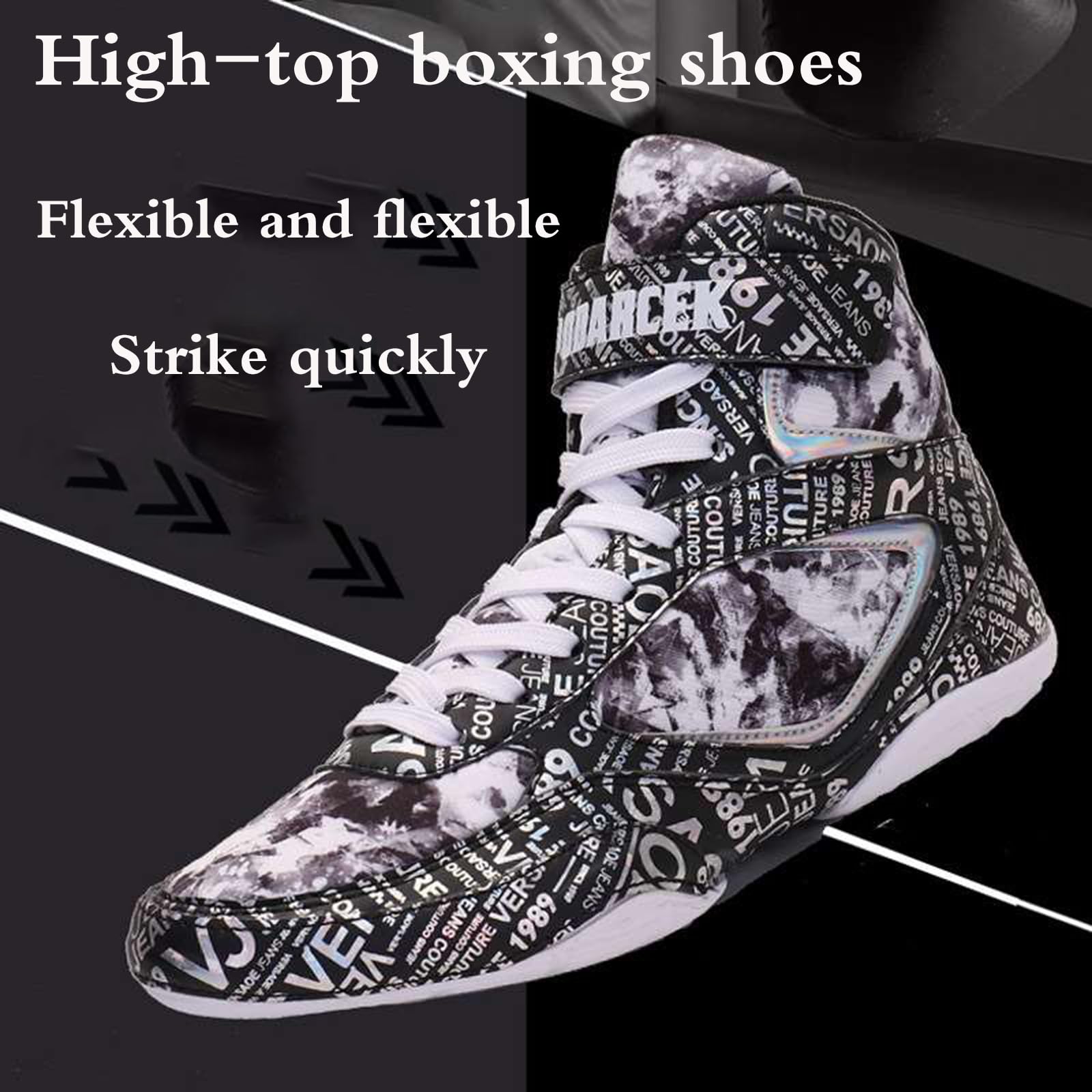 Diese professionellen Boxschuhe sind perfekt für Wrestling, Taekwondo und Kampfsport! Aus atmungsaktivem Mesh-Material, das die Füße kühl und trocken hält. Das High-Top Design mit Bindeband gibt optimalen Halt und schützt die Knöchel. Die rutschfeste Sohle bietet maximale Traktion auf der Matte. In vielen Größen von 35-45 und verschiedenen Farben erhältlich. Wichtig: Vor dem Kauf Fußlänge messen und bei breiten Füßen eine Größe größer bestellen! So bist du sicher und bequem unterwegs beim Training.
