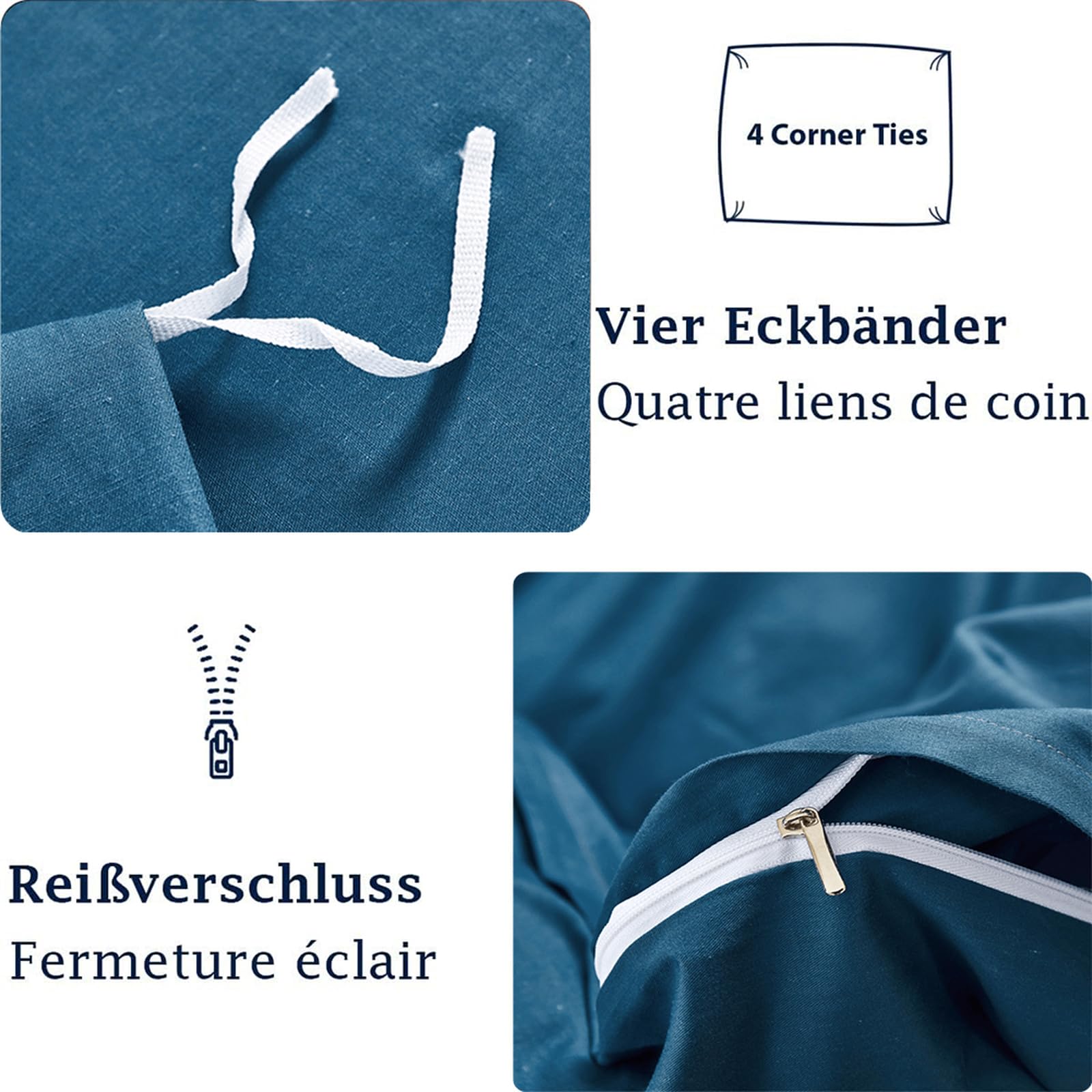 Der praktische verdeckte Reißverschluss macht das Beziehen zum Kinderspiel - kein lästiges Knöpfen mehr! Die vier Eckbänder halten deine Decke zuverlässig an Ort und Stelle, sodass sie nicht verrutscht und immer schön in Form bleibt. Bügelfrei und pflegeleicht - einfach in die Waschmaschine stecken und bei der ersten Wäsche über 60°C waschen für optimalen Tragekomfort.