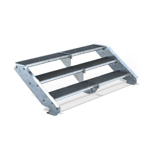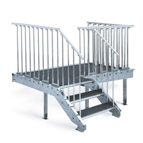 Außentreppe 4 Stufen Mit Podest - Höhe 66-80cm Verstellbar, Feuerverzinkt, 100cm Breite