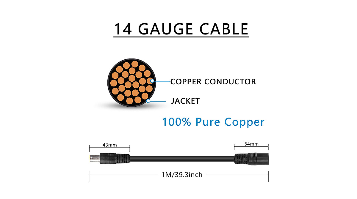 Mit 14AWG reinem Kupferkern und hochwertiger PVC-Ummantelung bietet das Kabel stabilen Stromfluss und ist dabei langlebig und korrosionsbeständig. Die Spannung von 12-24V bei 200W Leistung deckt die meisten Anwendungen ab.
