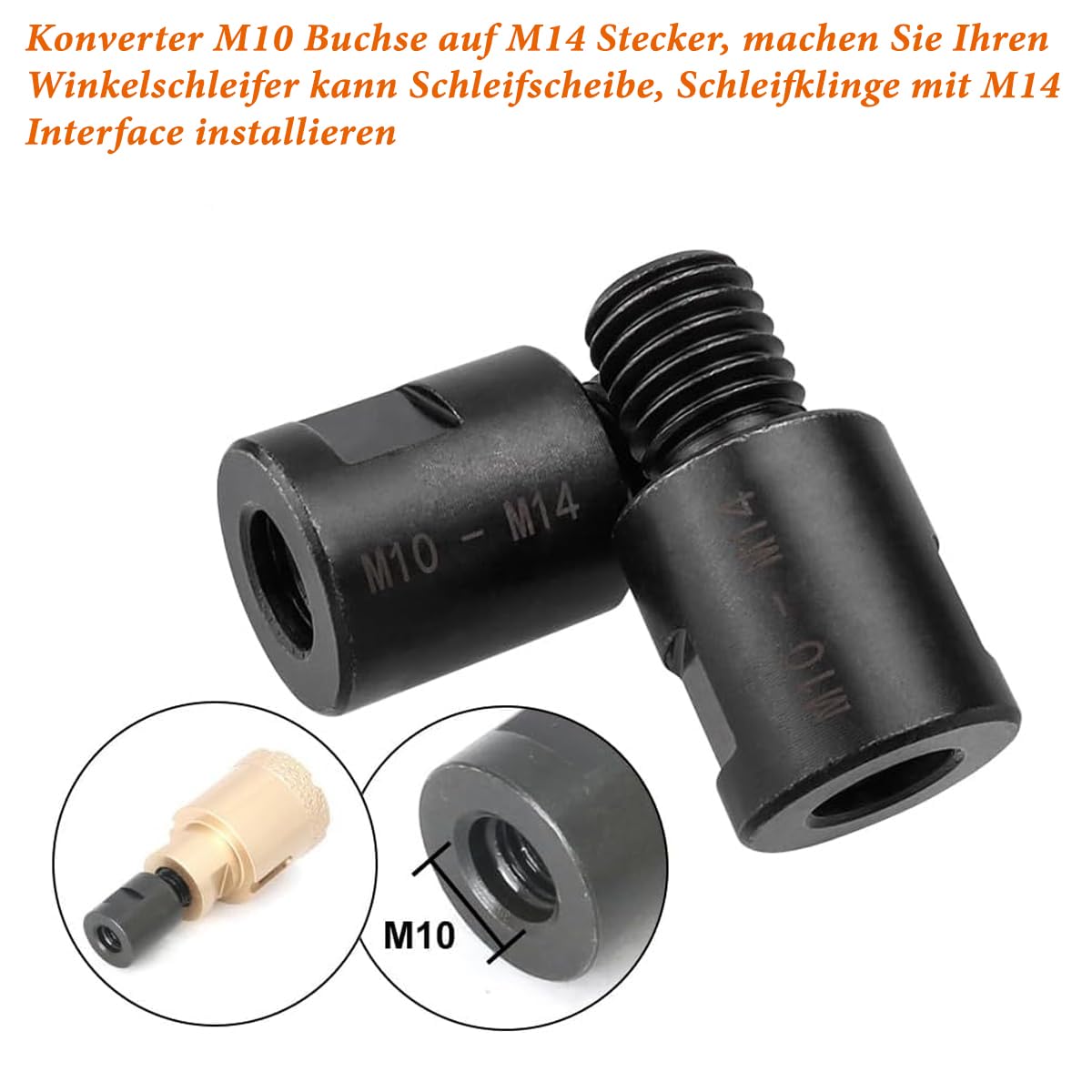Du hast nen Winkelschleifer mit M14-Gewinde aber Werkzeuge mit M10-Anschluss? Kein Problem mit diesen Adaptern! Die kleinen Helferlein machen genau das, was du brauchst: Sie wandeln das größere M14-Innengewinde in ein M10-Außengewinde um. So kannst du endlich all deine M10-Werkzeuge wie Kernbohrer, Lochsägen, Profilräder oder Polierscheiben an deinem M14-Winkelschleifer nutzen. Aus hochwertigem CRV-Stahl gefertigt, sind die Adapter besonders schlagfest und verschleißresistent - da macht langes Arbeiten keinen Abbruch. Mit ner Gesamtlänge von 42mm sind sie kompakt genug, um nicht im Weg zu sein, aber lang genug für sicheren Halt. Einfach reinschrauben, festziehen und los geht's! Perfekt für Winkelschleifer, Betonschleifer, Nasspolierer und andere Werkzeuge mit M14-Gewinde. Das 2er-Set ist ideal - einen im Einsatz, einen als Reserve. So musst du nicht jedes Mal umständlich wechseln, wenn du unterschiedliche Arbeiten erledigst. Ob Profi oder Heimwerker - diese Adapter gehören in jede Werkstatt!