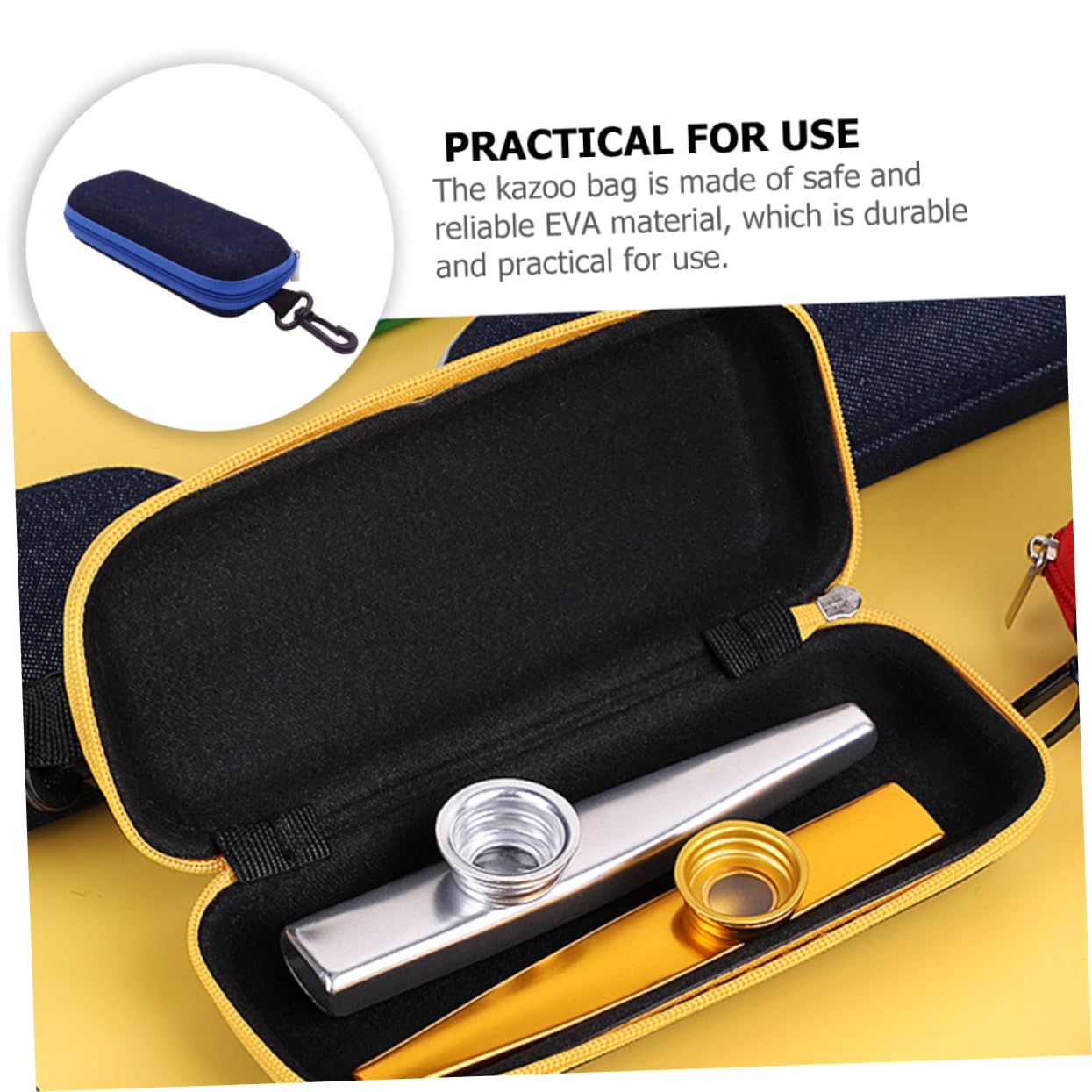 Deine Kazoos verdienen den besten Schutz! Dieser robuste EVA-Koffer bewahrt deine Kazoos sicher vor Stößen, Kratzern und Schmutz. Mit Reißverschluss und praktischem Rillendesign für 2 Kazoos. Maße: 16,5x6,6x4,1 cm - kompakt genug für jeden Rucksack. Wasserdicht und stoßfest, damit deine Instrumente immer geschützt sind. Perfekt für unterwegs, ob zur Bandprobe, in die Schule oder auf Reisen. Endlich Ordnung im Kazoo-Chaos! Der Koffer ist in zufälligen Farben erhältlich - immer ein kleines Überraschungselement.