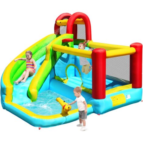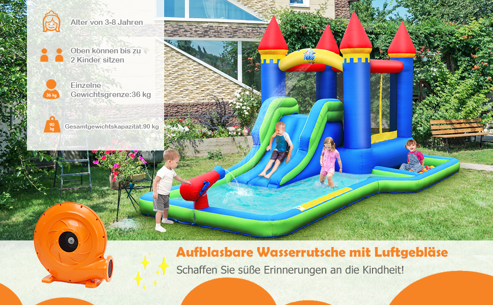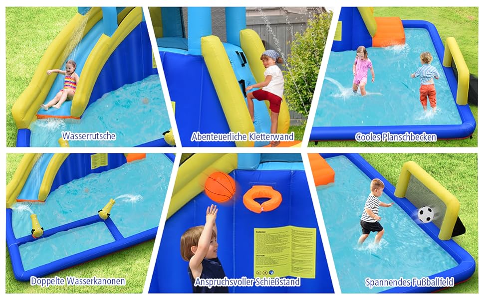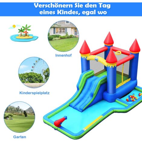 Mann, diese aufblasbare Hüpfburg mit Wasserrutsche ist der absolute Hit für den nächsten Kindergeburtstag! Mit stolzen 525x373x205 cm ist die Burg riesig und bietet Platz für mehrere Kinder gleichzeitig. Die zwei integrierten Wasserkanonen sorgen für willkommene Abkühlung an heißen Tagen - die Kids werden aus dem Häuschen sein! Aber nicht nur das: Man kann auch rutschen, klettern, hüpfen und mit den mitgelieferten Bällen spielen. Das Oxford-Material ist super stabil und hält auch mal was aus, wenn die Kleinen richtig toben. Der Aufbau ist simpler als man denkt: Gebläse anschließen (das muss man separat besorgen) und in wenigen Minuten steht die Burg. Nach dem Spielen lässt sie sich easy zusammenrollen und in der mitgelieferten Tasche verstauen. Mit 9 Heringen bleibt sie sicher stehen, und falls mal was kaputt geht, sind sogar Reparaturflicken dabei. Für Kinder von 3-12 Jahren geeignet, mit ner maximalen Belastung von 120 kg. Perfekt für den Garten, aber auch für Kindergärten oder Schulfeiern. Das beste: Die Kleinen sind beschäftigt, bewegen sich an der frischen Luft und haben einen Riesenspaß - was will man mehr? Einfach klasse für den Sommer!