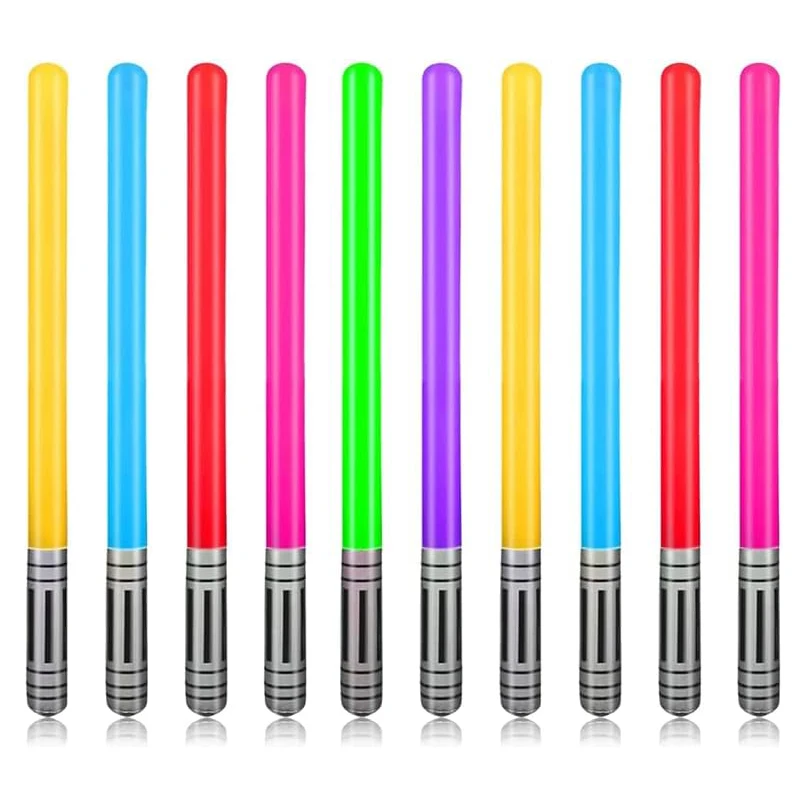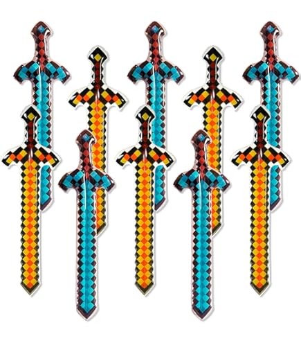 Achtung, kleine Ritter und Prinzessinnen - hier kommen die coolsten Spielschwerter ever! Dieses 10-teilige Set mit 65 cm langen aufblasbaren Schwertern im trendigen Pixel-Design bringt Action in jede Kinderparty. Aus hochwertigem, ungiftigem PVC gemacht, sind sie superweich, flexibel und absolut sicher für wildeste Schwertkämpfe. Die leuchtenden Farben begeistern jedes Kind! Einfach mit der Luftpumpe aufblasen (zu 80-90% gefüllt sind sie perfekt) und schon kann der Spaß beginnen. Nach der Party einfach das Ventil öffnen, Luft rauslassen und platzsparend verstauen. Mit dabei sind sogar Reparaturflicken für den Fall der Fälle. Perfekt für Piratenpartys, Geburtstage, Halloween, Karneval oder einfach nur zum Verkleiden und Rollenspielen zu Hause. Egal ob Junge oder Mädchen - mit diesen Schwertern werden sie zu echten Helden ihrer eigenen Abenteuergeschichte! Ein absolutes Must-have für jede Spielzeug-Sammlung.