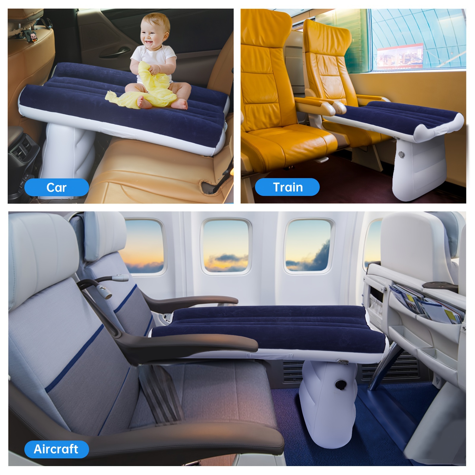 Endlich entspannt reisen mit Kindern! Dieses aufblasbare Flugzeugbett ist der Game-Changer für alle Familienunternehmungen. Ob im Flugzeug, Zug, Auto oder Hotel - dein Kleinkind hat immer einen weichen und gemütlichen Schlafplatz. Mit den Maßen 74,5 x 52 cm bietet es genug Platz zum Kuscheln und Schlummern. Das Material aus PVC mit weicher Flock-Oberfläche ist super hautfreundlich und atmungsaktiv. Die Doppeldreieck-Struktur gibt extra Stabilität, sodass auch aktive Kinder nicht durchbrechen. Der U-förmige Schutzrand sorgt für Sicherheit und verhindert ein Herausrollen. Einfach mit der beiliegenden Handpumpe aufblasen und schon ist das Bett einsatzbereit. Nach der Reise klappst du es platzsparend zusammen - passt in jede Reisetasche! Kein lästiges Schleppen von schweren Reisebetten mehr. Perfekt für Kinder von 1-4 Jahren. Die weiche Oberfläche fühlt sich an wie ein richtiges Bettchen und dein Kind schläft garantiert besser. Ein Muss für alle reisefreudigen Familien!