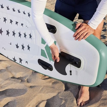 Ready for adventure? Dieses Home Deluxe Stand Up Paddle Board ist dein Ticket zu unvergesslichen Stunden auf dem Wasser! Erhältlich in drei Größen: S (305x81x12cm), M (320x81x12cm) und L (366x81x12cm) - perfekt abgestimmt auf deine Größe und Erfahrung. Das komplette Set enthält alles, was du brauchst: SUP-Board, Paddel, Doppelaktion-Pumpe, Tragetasche, Reparatur-Set und die Finnen. Mit hochwertiger Single Layer Drop Stitch Technologie ist das Board extrem stabil und belastbar. Die rutschfeste Oberfläche gibt dir sicheren Halt, das 3-Finnen-System sorgt für beste Spurtreue. Das elastische Gepäckband bietet Stauraum für dein Equipment. Schnell aufgebaut, leicht zu transportieren - ob auf dem See, am Meer oder auf dem Fluss. Perfekt für Einsteiger und Fortgeschrittene, die Freiheit und Spaß auf dem Wasser lieben!