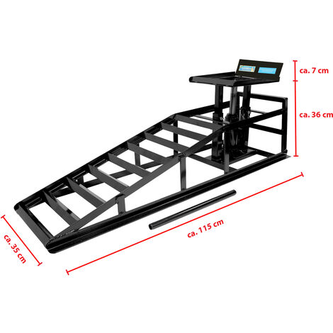Professionelle Autopflege war noch nie so einfach! Dieses 2er Set hydraulischer Auffahrrampen von Warmfay bietet dir maximale Flexibilität bei der Fahrzeugwartung. Jede Rampe trägt bis zu 5 Tonnen (5000kg) und ist damit perfekt für Kleinwagen bis leichte LKWs.\\n\\nDie Höhe lässt sich stufenlos von 250mm bis 385mm einstellen - ideal für verschiedene Fahrzeugtypen und Arbeiten. Die geräumige Plattform (300x270mm) bietet Platz für Reifen bis 275mm Breite, selbst tiefergelegte Sportwagen kommen problemlos darauf.\\n\\nAus hochfestem Stahl mit spezieller Pulverbeschichtung für doppelte Rostbeständigkeit. Der integrierte Überfahrschutz sorgt für zusätzliche Sicherheit. Die kompakte Bauweise ermöglicht platzsparendes Stapeln in der Garage.\\n\\nIm Lieferumfang enthalten: 2x Hydraulikrampen, 2x 5-Tonnen-Wagenheber, Befestigungsschrauben und Wagenheberstangen. Perfekt für Ölwechsel, Bremsenarbeiten und allgemeine Wartungsarbeiten!