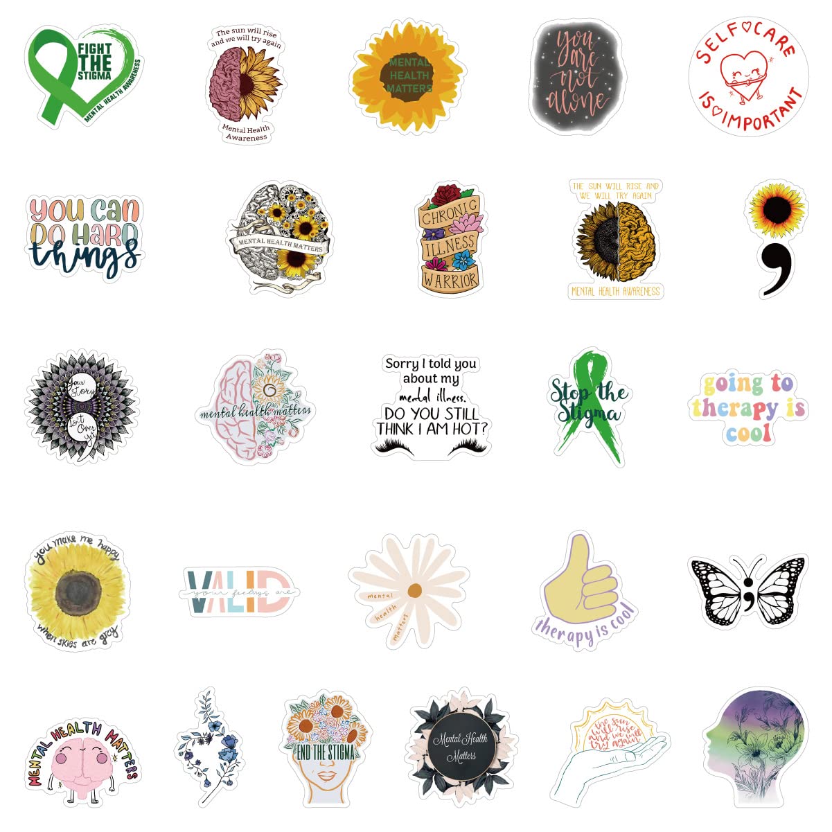 Bring Farbe in dein Leben mit diesen 100 bunten Mental Health Aufklebern! Perfekt für Laptop, Skateboard, Fahrrad, Wasserflasche oder Moped. Aus hochwertigem Vinyl-PVC - wasserdicht, sonnenbeständig und langlebig. Jeder Aufkleber ist ein Unikat mit Größen von 5-6cm. Super für Teenager, Erwachsene und alle, die ihre Sachen individuell gestalten wollen. Einfach abziehen, aufkleben und dein Style ist gesetzt! Tolle Geschenkidee oder einfach mal was für sich selbst.