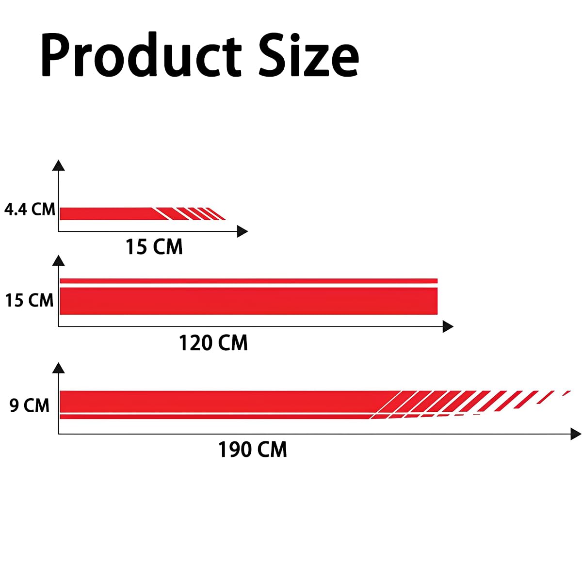 Die Motorhauben-Streifen messen 120x15 cm, die Seitenstreifen 220x11,5 cm. Selbstklebende Rückseite für einfache Montage - keine Werkzeuge nötig. Schützt gleichzeitig den Lack vor Parkplatz-Schäden.
