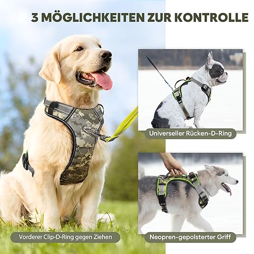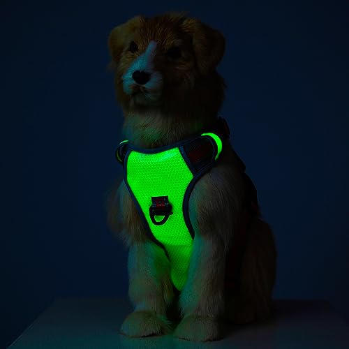 Für alle Hundehalter, die auch abends sicher unterwegs sein wollen: Dieses Joytale LED-Hundegeschirr ist der absolute Game-Changer! Das Geschirr leuchtet richtig hell mit LEDs auf dem Rücken - mit 3 Modi: schnelles Blinken, langsames Blinken und Dauerlicht. Dazu kommen reflektierende Streifen vorne für extra Sichtbarkeit. Per USB-C aufladbar - nach 1,5 Stunden Laden leuchtet es bis zu 12 Stunden durchgehend oder 20 Stunden im Blinkmodus. Super praktisch für Herbst und Winter, wenn es früh dunkel wird! Das Geschirr ist gut gepolstert und hat atmungsaktives Netzfutter innen, damit es deinem Hund nicht scheuert. Mit zwei Metall-D-Ringen - vorne für Anti-Zieh-Training, hinten für lockeres Spazierengehen. Der Griff auf dem Rücken gibt dir extra Kontrolle wenn's nötig ist. Vier verstellbare Gurte sorgen für perfekten Sitz. Für mittelgroße Hunde wie Französische Bulldogge, Beagle oder Border Collie. Einfach mal messen vor dem Kauf - dann steht dem sicheren Nachtspaziergang nichts mehr im Weg!