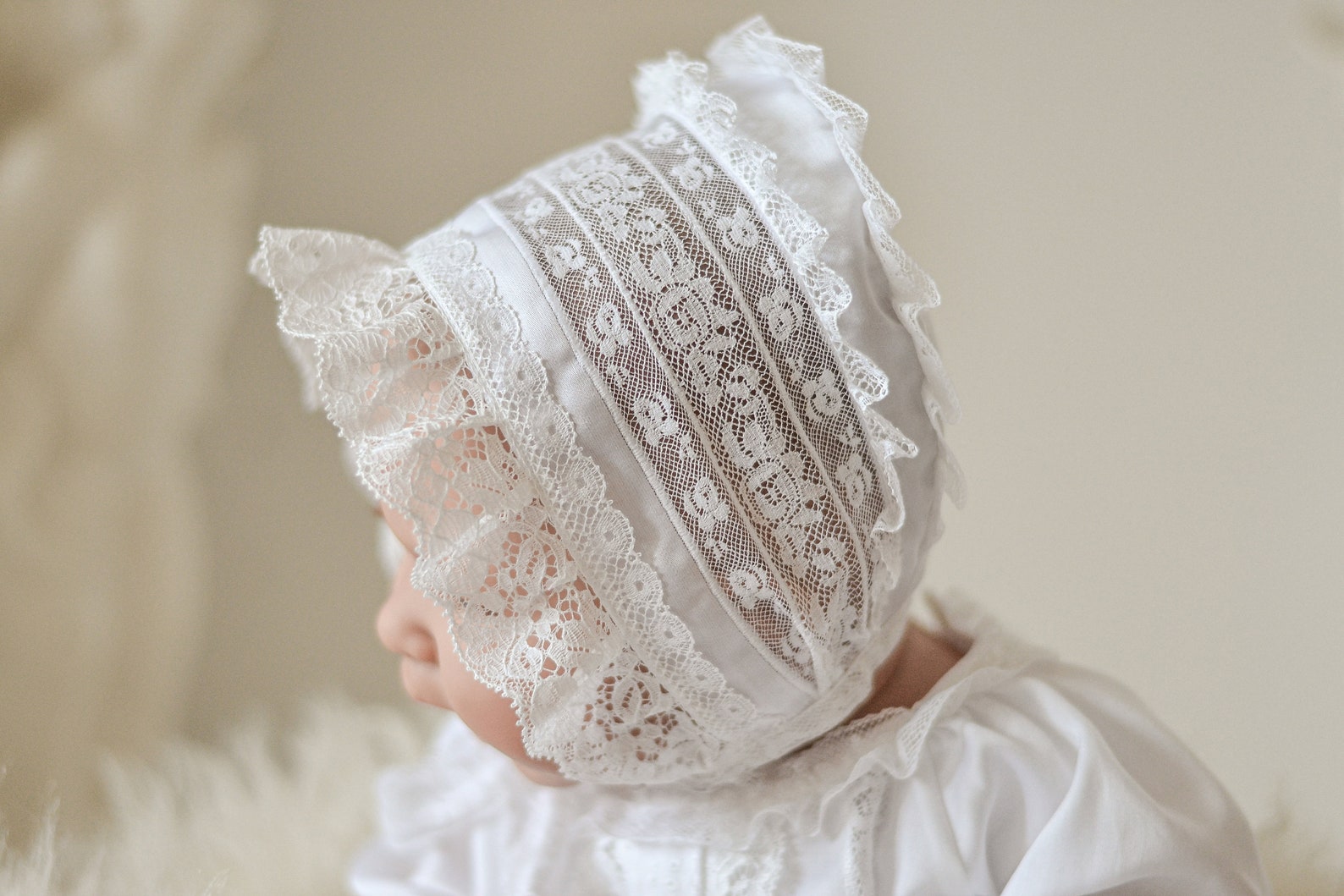 Für den wichtigsten Tag im Leben deines kleinen Engels! Dieses Taufkleid ist einfach nur bezaubernd und von bester Qualität.\n\nMaterial: 100% Baumwolle - natürlich, atmungsaktiv und super weich. Perfekt für die zarte Babyhaut. Wird nach Bio-Richtlinien hergestellt.\n\nFarbe: Neutralweiß - zeitlos, elegant und passt zu jeder Taufzeremonie. Sieht auf Fotos einfach wunderschön aus.\n\nDesign: Minimalistisch und schlicht - der Fokus liegt auf der Qualität und dem Komfort. Kein schnickschnack, nur pure Eleganz.\n\nBesonderheit: Einlagiger Stoff - ideal für Frühling und Frühsommer. Nicht zu warm, nicht zu kühl.\n\nRückseite: Knopfverschluss - macht das An- und Ausziehen super einfach. Auch für ungeduldige Babys geeignet.\n\nGröße: L16 - perfekt für die meisten Babys. Bitte vorher Maß nehmen!\n\nPflege: Ganz wichtig - Handwäsche bei 30°C. So bleibt das Kleid lange schön.\n\nPerfekt für:\n• Die Taufe\n• Fototermine\n• Familienfeiern\n• Oder als Erbstück\n\nWird zu einem wertvollen Andenken - das deine Familie vielleicht weitervererbt.\n\nMach den Tauftag unvergesslich - mit diesem wunderschönen Taufkleid!