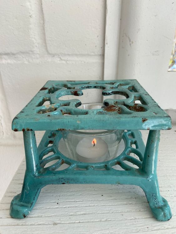 Das Besondere: Es ist aus massivem Gusseisen gefertigt und sieht mit den hübschen Verzierungen einfach charmant aus. Die herausnehmbare Platte macht das Einlegen des Teelichts super einfach.