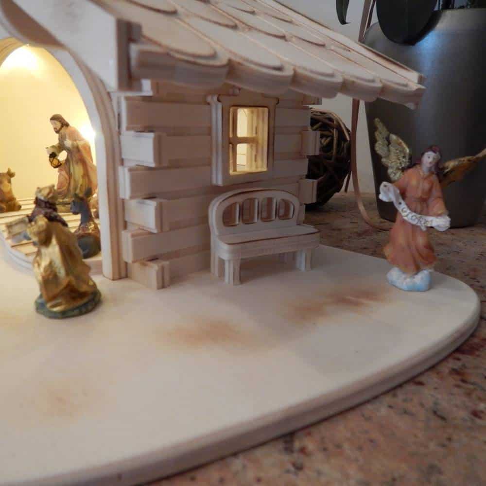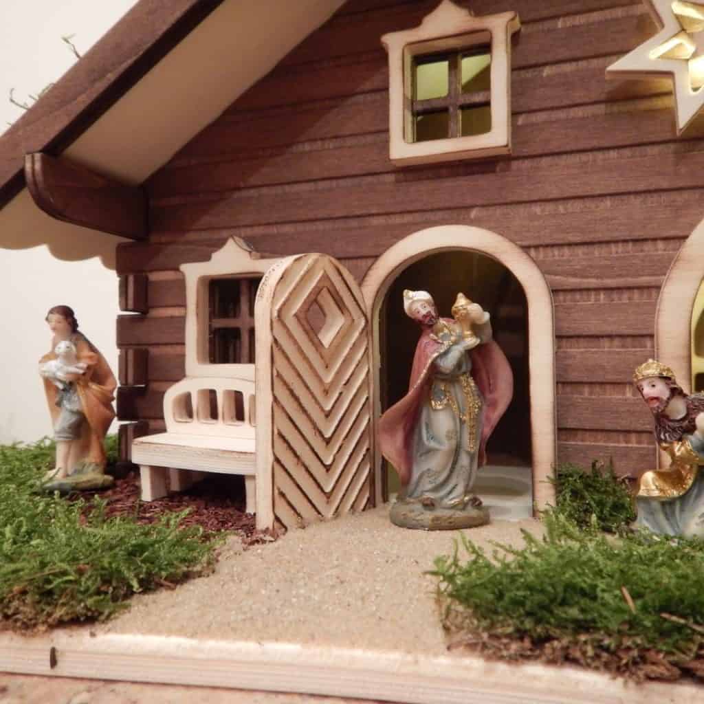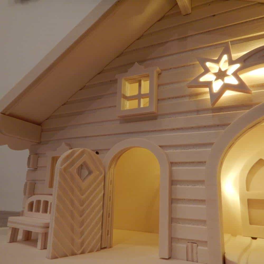 Diese wunderschöne Weihnachtskrippe aus Holz bringt den Zauber von Bethlehem direkt in dein Zuhause! Mit den integrierten LED-Lichtern wird die detailreiche Krippen-Szene stimmungsvoll in Szene gesetzt.\\n\\nMaße: 20x14,2x4,4cm - perfekt für:\\n• Wohnzimmer-Regal\\n• Fensterbank\\n• Nachttisch\\n• Weihnachtsdekoration-Tisch\\n\\nBesonderheiten:\\n• Hochwertige Holz- und Acryl-Verarbeitung\\n• Detailreiche 3D-Schnitzereien\\n• Glatte, splitterfreie Oberfläche\\n• Mit LED-Beleuchtung innen\\n• Batteriebetrieben (Batterien nicht enthalten)\\n\\nEinfache Bedienung:\\n1. Batterien einsetzen\\n2. Knopf drücken\\n3. Und schon leuchtet die Krippe!\\n\\nDas hohle Design gibt den Blick frei auf die bezaubernde Szene mit Jesus in der Krippe. Ob als Geschenk für Weihnachtsfans oder zur Ergänzung der eigenen Deko - diese Krippe wird Jahr für Jahr für festliche Stimmung sorgen!\\n\\nHinweis: Batterien bitte separat besorgen. Die Krippe ist sofort einsatzbereit und macht sich besonders in den Abendstunden bezahlt, wenn das warme Licht die gesamte Szenerie illuminiert.