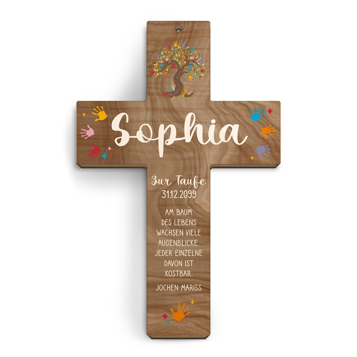 Personalisiertes Taufkreuz Aus Holz - Lebensbaum Design 13x20cm Walnuss-Optik