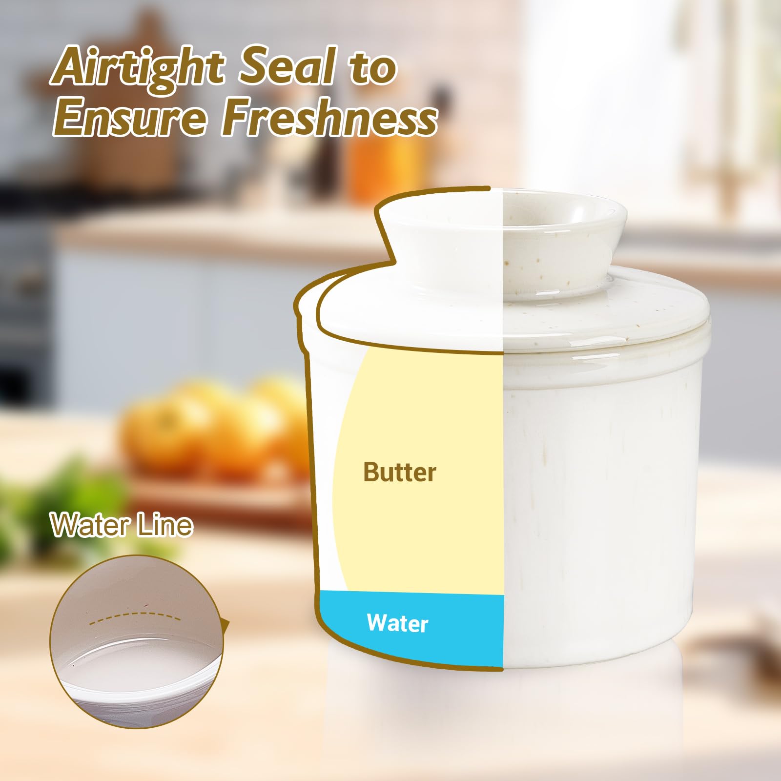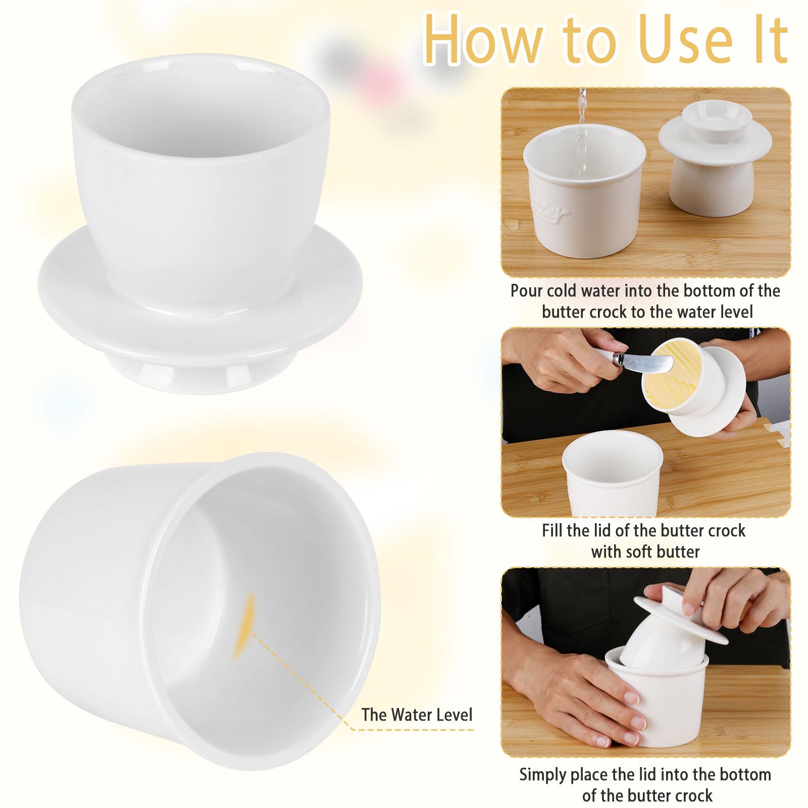 So einfach geht's: Butter in die Glocke füllen, kaltes Wasser in den Untersatz - fertig! Das Wasser sorgt für natürliche Abdichtung gegen Luft und Bakterien. Material: Hochwertige Keramik, absolut blei- und kaliumfrei.
