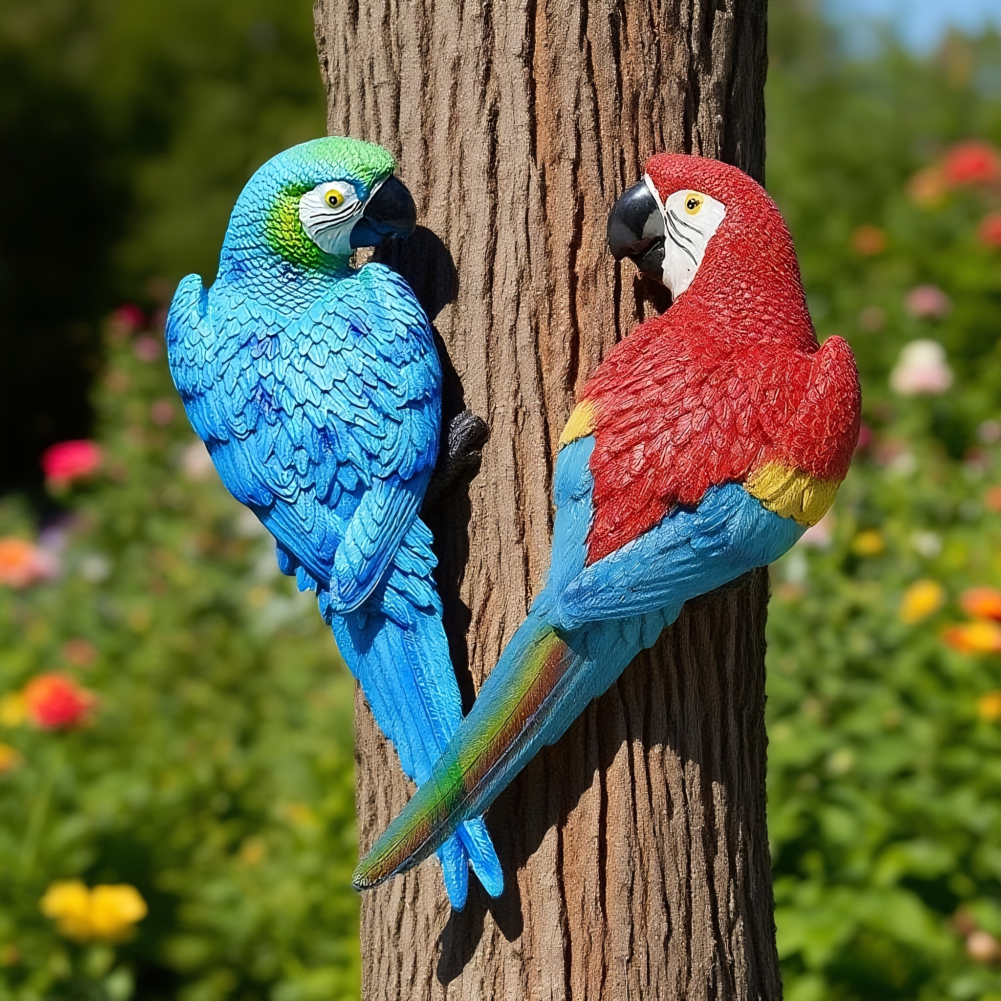 • Papageien Ornament Aus Kunstharz | Schwingende Vogel-Dekoration | Für Garten & Wohnung