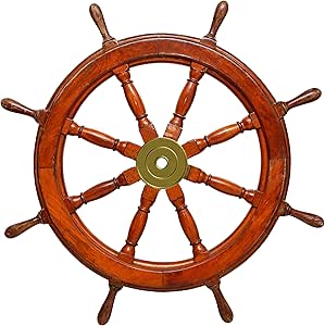 Dieses wunderschöne maritime Steuerrad aus massivem Sheesham-Holz bringt echtes Piraten-Feeling in dein Zuhause! Mit einer Messingnabe von 6 cm Durchmesser und einem Gesamtdurchmesser von 47 cm ist es ein echter Hingucker. Das Rad ist voll funktionstüchtig und kann gedreht werden - perfekt für die Deko im Wohnzimmer, Kinderzimmer oder auch im Gartenhaus. Die edle Holzoptik kombiniert mit dem glänzenden Messing verleiht jedem Raum einen maritimen Charme. Ob als Wanddekoration, als besonderes Möbelstück oder als Spielzeug für kleine Piraten - dieses Steuerrad ist vielseitig einsetzbar. Einfach aufhängen oder aufstellen und schon fühlst du dich wie auf hoher See! Das robuste Massivholz garantiert lange Freude an diesem besonderen Stück.