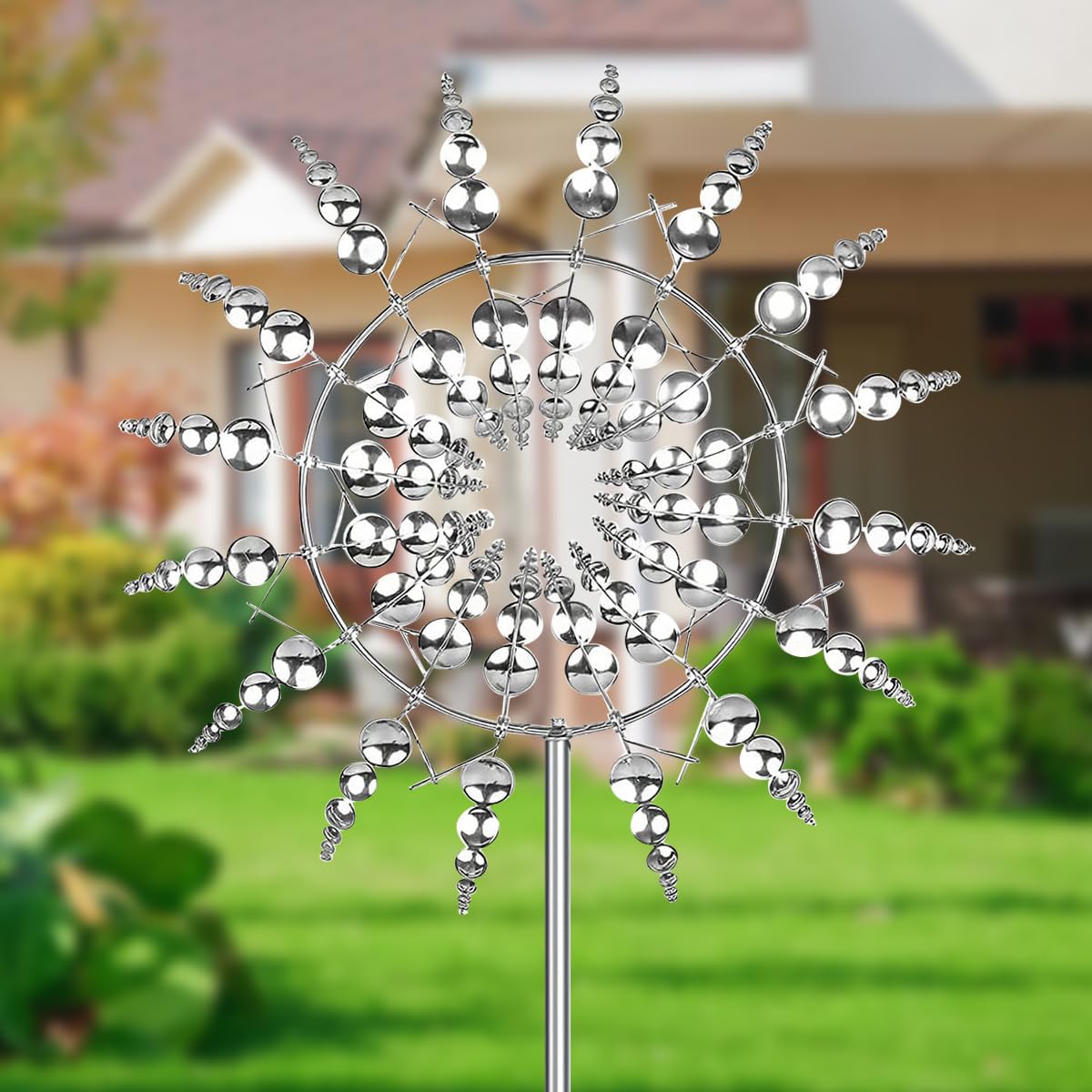 Diese bezaubernde 3D Windmühle aus Metall bringt Leben in deinen Garten! Mit 70cm Höhe und 31cm Durchmesser ist sie ein echter Hingucker auf Terrasse, Rasen oder im Vorgarten. Die kugelgelagerte Konstruktion sorgt dafür, dass sie sich schon bei der kleinsten Brise leise dreht - so siehst du immer, woher der Wind weht. Die solide Metallkonstruktion mit wetterfester Beschichtung hält jedem Wetter stand. Einfach montieren - kein Strom nötig, nur den Metallpfahl in die Erde stecken und den Wind genießen. Perfekt für alle, die ihrem Garten etwas Besonderes verleihen möchten. Deine Nachbarn werden neidisch sein, aber gestört wird niemand - versprochen!