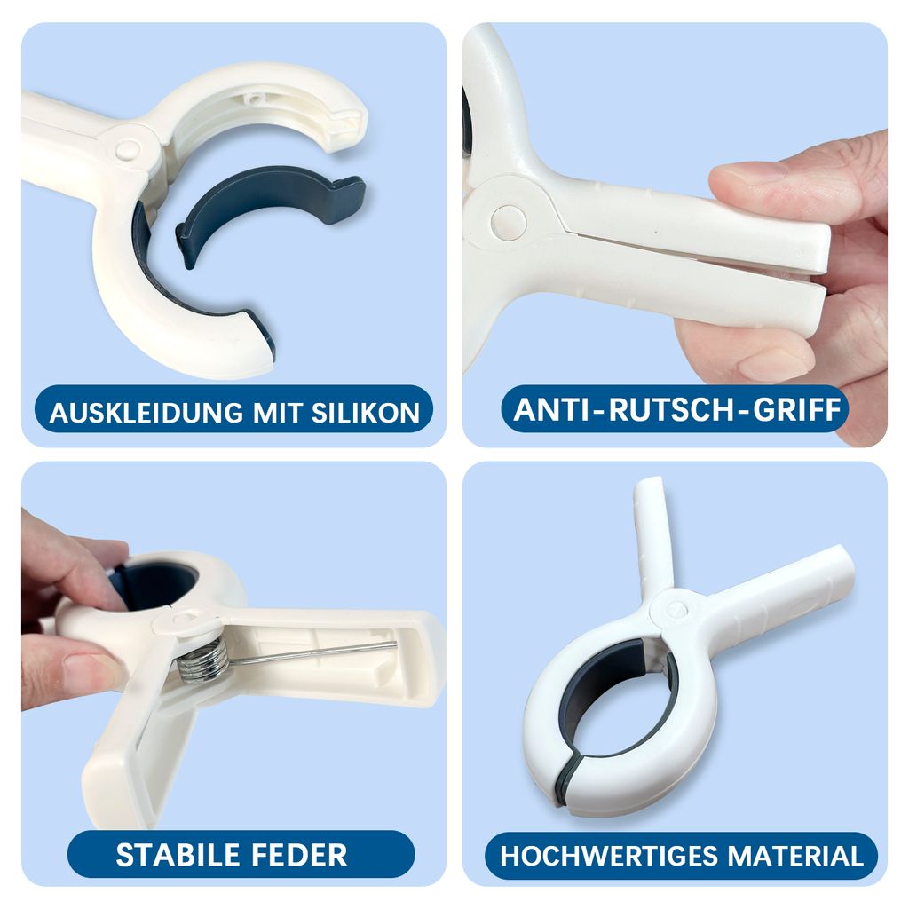 Schluss mit fliegenden Handtüchern am Strand! Diese 6 robusten Klammern aus Edelstahl halten alles fest was dir lieb ist. Ob am Pool, beim Camping oder im Garten – bei Wind kannst du dich entspannt zurücklehnen. Die Federkraft ist richtig stark, damit auch dickere Decken nicht wegfliegen. Mit rutschfestem Gummischutz schonen sie deine Textilien. Super praktisch: - Extrem langlebig (rostfrei!) - Leicht zu transportieren - Auch für Moskitonetze oder Wäscheleine geeignet - Klappbar und platzsparend Mach dein nächstes Outdoor-Abenteuer stressfrei! Die schwarze Farbe sieht dazu noch richtig stylisch aus. Einfach in die Tasche stecken und los geht's – ob Beach Day oder Festival.