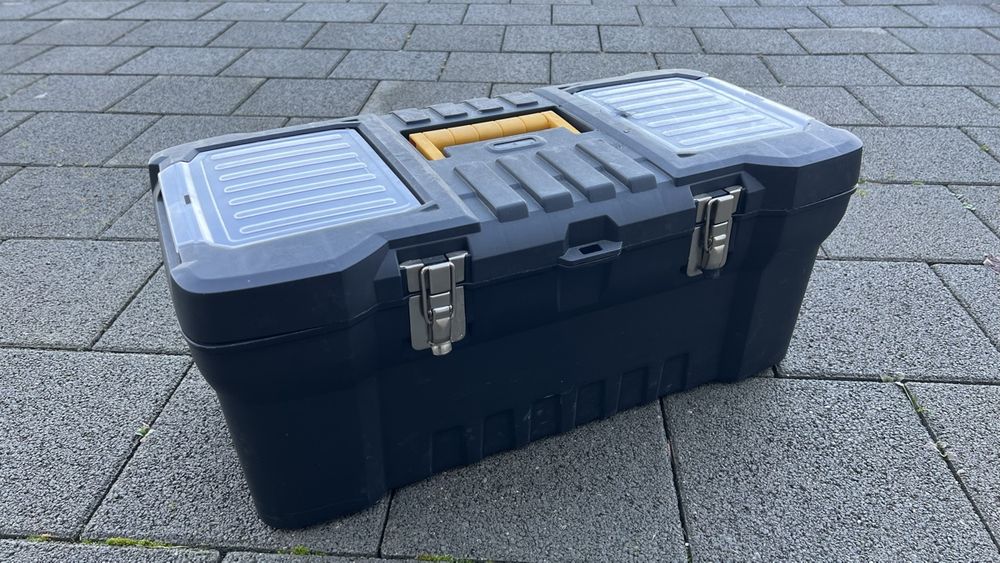 Endlich Ordnung im Werkzeugchaos! Diese stabile Werkzeugkiste aus Metall ist genau das Richtige für alle Heimwerker und Profis. Aus extra dickem, kaltgewalztem Stahl gefertigt, hält sie wirklich was aus und ist dabei total robust. Die Oberfläche ist pulverbeschichtet, das macht sie besonders verschleißfest und korrosionsbeständig. Der starke Metallriegel sorgt dafür, dass deine Werkzeuge sicher verschlossen sind und nichts verloren geht. Der ergonomische Griff liegt super in der Hand - so kannst du die Kiste auch bequem transportieren. Ob Schraubendreher, Schraubenschlüssel, Hämmer oder Sägen - in dieser Kiste findet alles seinen Platz. Perfekt für die Werkstatt, die Garage oder auch für unterwegs im Auto. Das kompakte Design spart Platz und trotzdem ist innen genug Stauraum für alle wichtigen Werkzeuge. Einfach praktisch und unverzichtbar für jeden, der gerne selbst Hand anlegt!