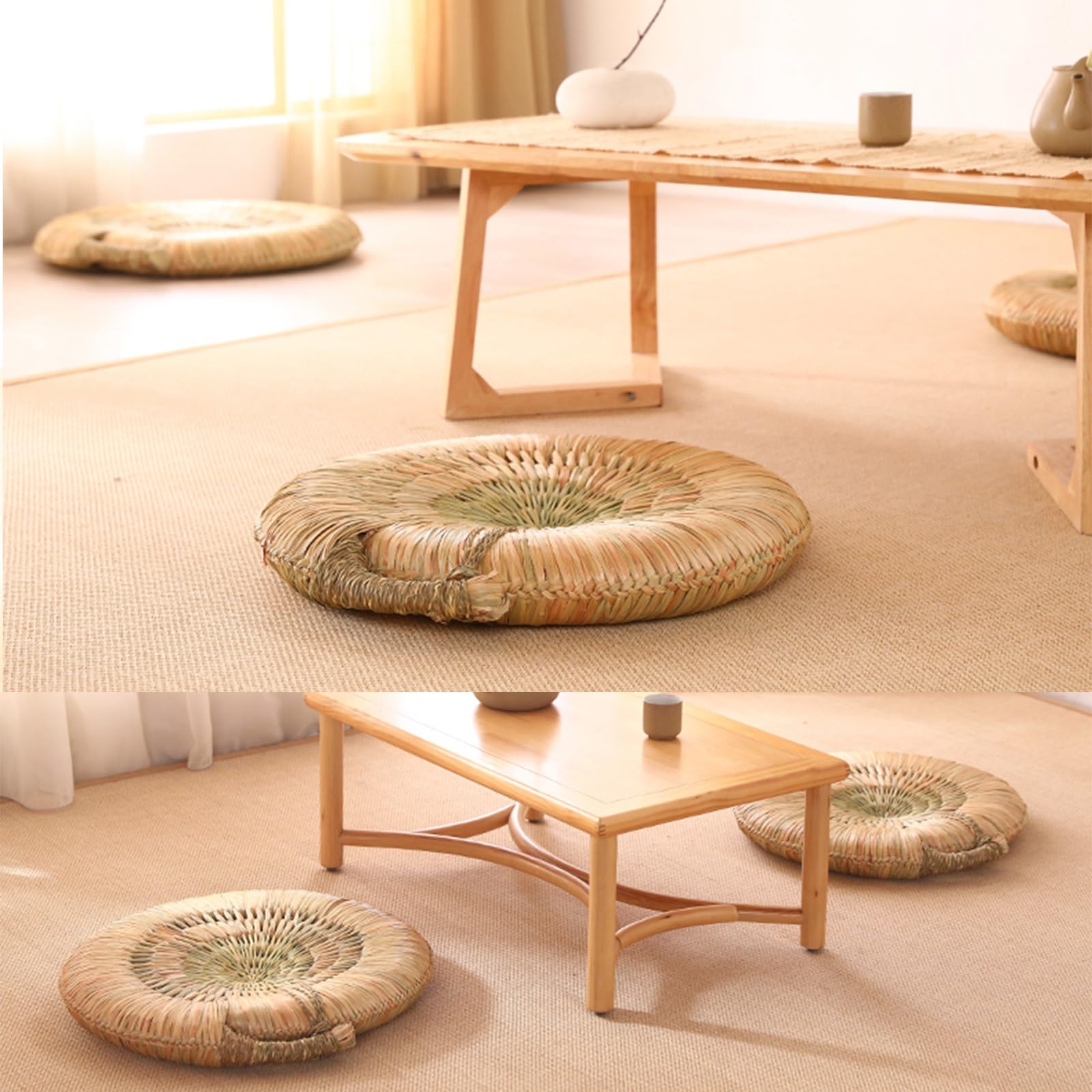 Wow, dieses rundgeflochtene Tatami-Kissen ist einfach der Hit für alle, die es natürlich und gemütlich mögen! Hergestellt aus echtem Naturstroh, sieht es nicht nur super authentisch aus, sondern ist auch mega praktisch. Perfekt fürs Meditieren, als stylisches Sitzkissen im Wohnzimmer oder sogar als gemütliche Fensterbank-Auflage. Das rutschfeste Material sorgt dafür, dass es immer da bleibt, wo du es haben willst – kein Verrutschen mehr! Und weil es komplett handgefertigt ist, hast du ein echtes Unikat zu Hause. Ob im Wohnzimmer, im Yogaraum oder einfach nur zum Chillen – dieses Kissen passt sich an. Mit seinem schlichten, natürlichen Look verleiht es jedem Raum sofort eine entspannte, japanische Atmosphäre. Einfach draufsetzen und wohlfühlen! ✔ Material: natürliches geflochtenes Stroh ✔ Durchmesser: ca. 40 cm (je nach Modell) ✔ Rutschfeste Unterseite ✔ Handgefertigt ✔ Vielseitig einsetzbar: Meditation, Wohnzimmer, Gebetsraum, Fensterbank ✔ Nachhaltig & langlebig Perfekt für alle, die natürliche Materialien lieben und Wert auf Nachhaltigkeit legen. Einfach ein tolles Allround-Kissen für jeden Tag!