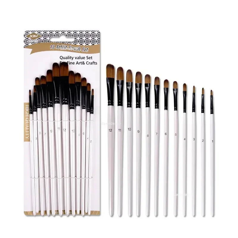 Für alle, die gerne malen! Dieses 12-teilige Pinsel-Set hat alles, was du brauchst. Enthalten sind Flachpinsel in 6 verschiedenen Größen, ideal für Öl-, Acryl- und Aquarellfarben.\\n\\nDie Borsten sind aus hochwertigem Nylon, weich und elastisch. Sie nehmen Farbe gut auf und geben sie gleichmäßig ab. Die Holzstiele liegen angenehm in der Hand, die Metallhülsen halten sicher.\\n\\nEinfach mit warmem Wasser reinigen, die Borsten verlieren keine Haare. Perfekt für Anfänger, Hobbykünstler oder Profis. Tolle Ergebnisse auf Leinwand, Papier, Holz oder bei Modellbau. Ein super Geschenk für kreative Köpfe - mach deine Kunstwerke mit diesen Pinseln perfekt!