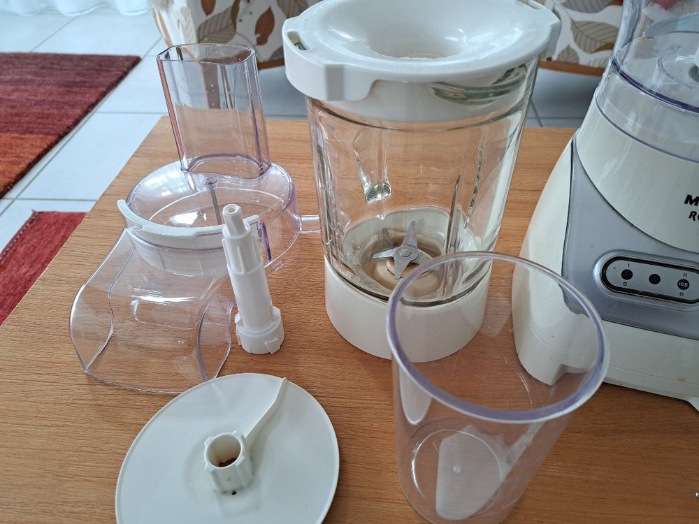Dein Standmixer verdient den besten Schutz! Diese praktische Abdeckung aus robustem Oxford-Stoff hält Staub, Spritzer und Kratzer fern. Mit den cleveren Taschen an Vorder- und Seiten kannst du Mixer-Aufsätze und Zubehör ordentlich verstauen. Maße: 35,5 x 23 x 35,5 cm - passt perfekt auf die meisten Standmixer. Wenn du sie nicht brauchst, einfach zusammenfalten und platzsparend wegräumen. Reinigung? Super einfach! Einfach mit feuchtem Tuch abwischen oder in der Maschine waschen. Die sorgfältigen Nähte halten ewig und die graue Farbe sieht in jeder Küche gut aus. Kleine Farbabweichungen sind möglich - aber die Qualität stimmt! Endlich Ordnung und Schutz für deinen Mixer!
