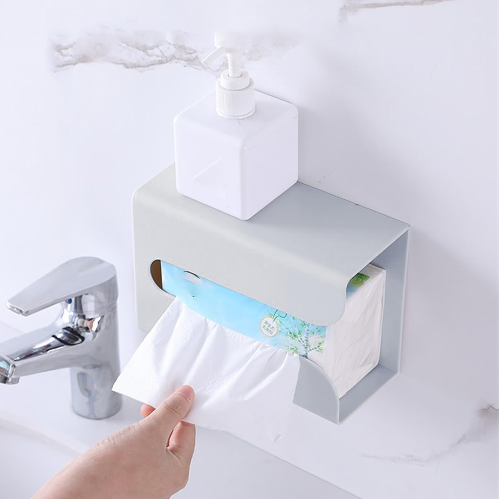 Schluss mit rumstehenden Taschentuchboxen die Platz wegnehmen! Dieser wandmontierte Tissue-Halter ist die perfekte Lösung für mehr Ordnung. Aus klarem PET-Material gefertigt, siehst du immer wie voll die Box noch ist - dank dem praktischen U-förmigen Fenster. Maße: 19x12x8,5cm - passt für alle Standard-Taschentuchpackungen. Die Montage ist super einfach: Mit starkem doppelseitigem Acrylkleber an die Wand, fertig! Kein Bohren nötig, hinterlässt keine Spuren. Besonders praktisch in Küche, Bad, Toilette oder sogar im Büro. Immer griffbereit aber nicht im Weg. Die transparente Ausführung sieht modern aus und passt zu jedem Einrichtungsstil. Auch super für Wohnmobile, Ferienhäuser oder Gästetoiletten. Hält sicher an der Wand und ist easy zu reinigen. Einfach Taschentücher nachfüllen wenn's leer wird - du siehst ja durch das Fenster wann's soweit ist. Mehr Ordnung, mehr Platz, mehr Style - was will man mehr?