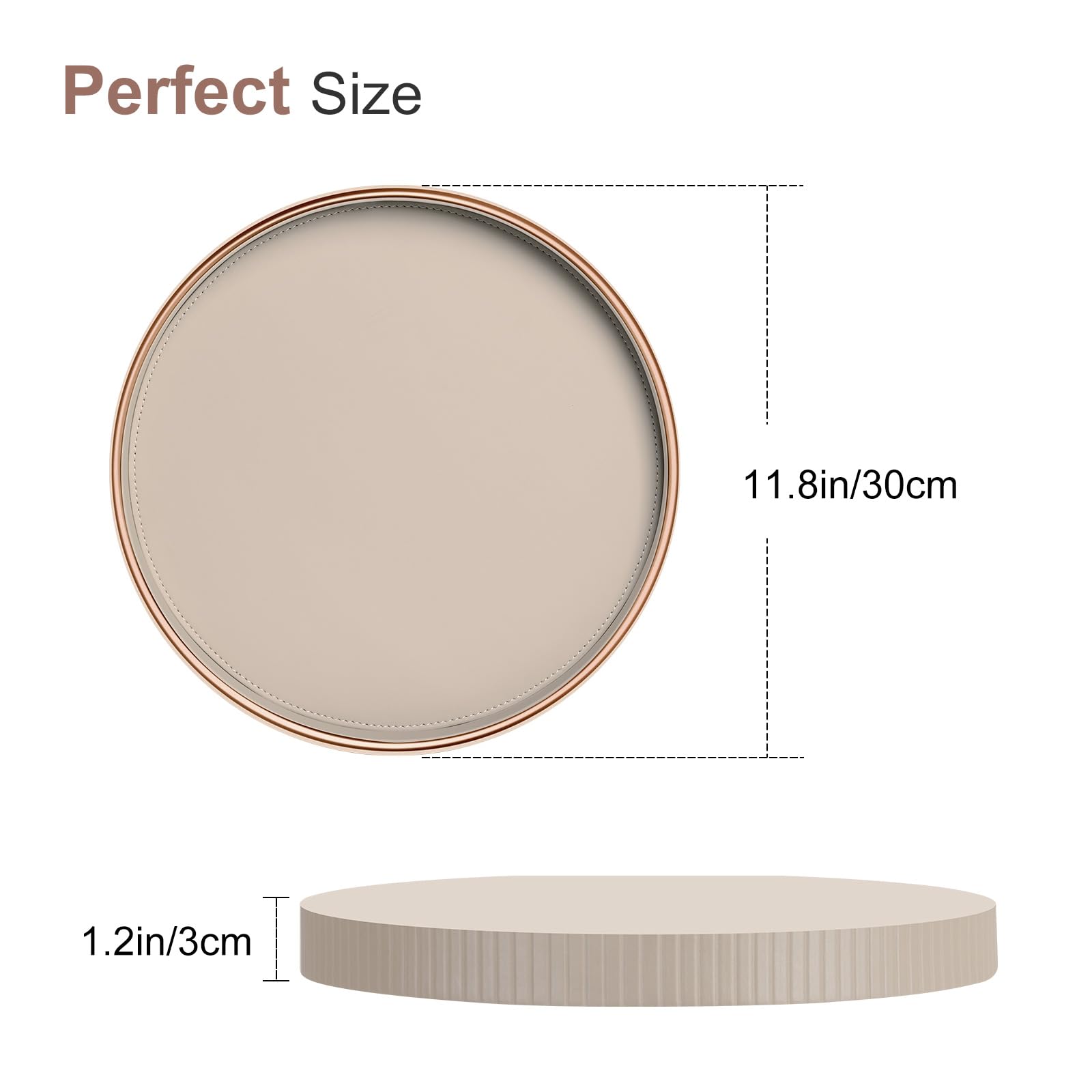 Hey, hast du mal wieder Lust, deine Wohnung aufzufrischen? Mit diesem runden Tablett von KINGFOM machst du alles gleich viel stylischer! Ob auf dem Couchtisch, im Schlafzimmer oder in der Küche – das Teil ist super vielseitig. Mit 30 cm Durchmesser und 3 cm Höhe ist es groß genug für deine Lieblingssachen: Parfümflakons, Kerzen, Schmuck oder einfach die Fernbedienung. Gefertigt ist es aus hochwertigem PU-Leder, das sich ganz easy abwischen lässt. Die feinen Nähte und die zarten Goldkanten geben dem Tablett diesen besonderen Look – total europäisch und modern! Perfekt auch als Geschenk für alle, die's gemütlich lieben. Egal ob Hochzeit, Geburtstag oder Einweihungsparty – damit liegst du immer richtig. Und keine Sorge: Es ist robust, langlebig und sieht einfach überall gut aus. In drei Farben erhältlich: Grau, Beige und Weiß. So ein praktisches Deko-Teil sollte wirklich jeder haben!