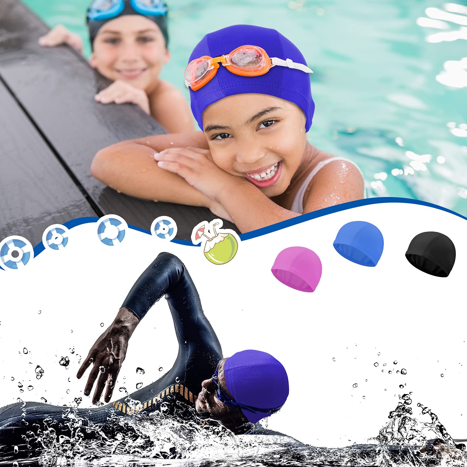 Elastische Badekappen Aus Stoff - 2 Stück Unisex Schwimmhauben Aus Nylon