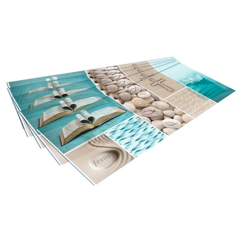 Zauberhafte Lichtstimmung für besondere Anlässe! Aus diesem wunderschönen Transparentpapier mit christlichem Prayer-Motiv bastelst du im Handumdrehen 5 bezaubernde Tischlichter. Einfach zusammenrollen, zusammenstecken - und schon verbreiten die Lichter eine festliche Atmosphäre. INHALT: 5 Blatt Transparentpapier (10x27cm) MATERIAL: 115g/qm, einseitig bedruckt MAßE: Ø ca. 8cm, Höhe ca. 10cm ANLÄSSE: Kommunion, Konfirmation, Hochzeit, Taufe, Adventszeit BESONDERHEIT: Einfache Bastelarbeit, kein Kleben nötig WICHTIG: Brennende Kerzen nie unbeaufsichtigt lassen Perfekt als Tischdeko für festliche Anlässe oder zur gemütlichen Raumatmosphäre!