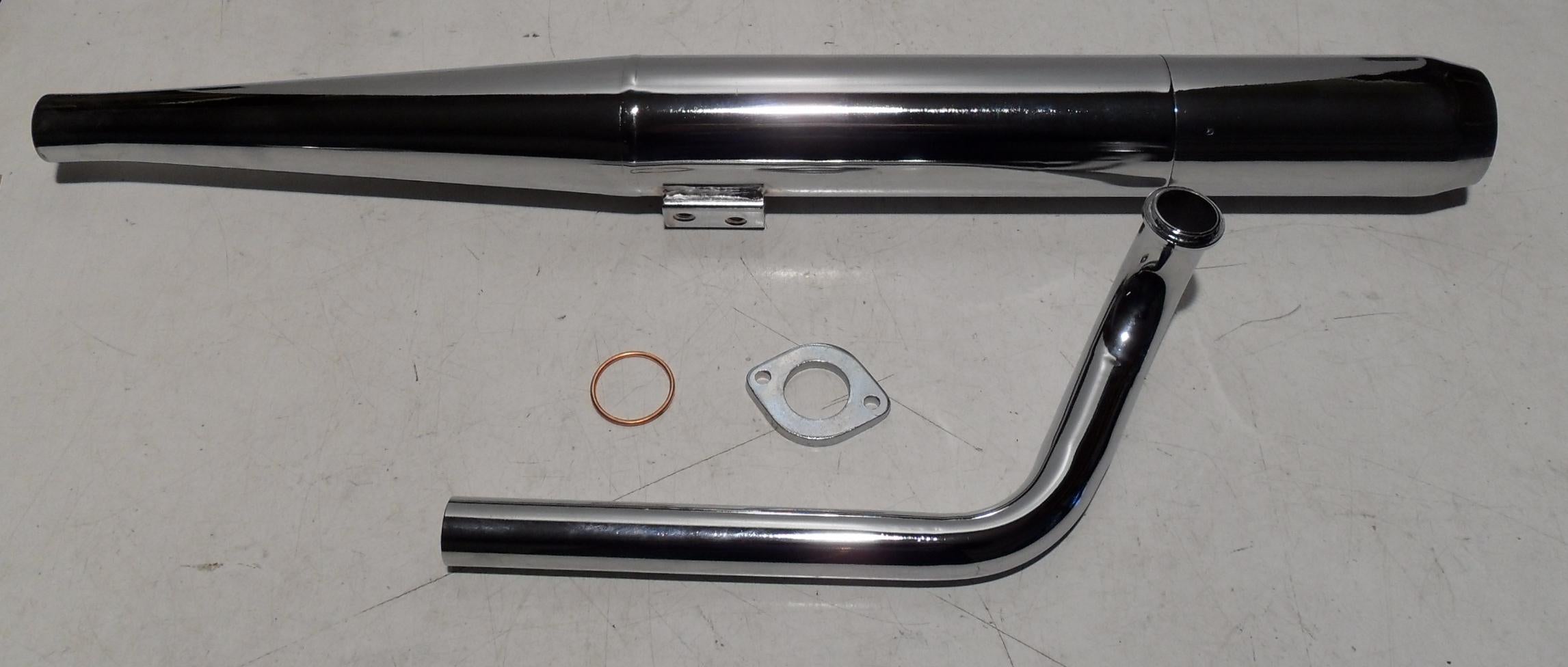 Suchst du einen neuen Auspuff für deine Kreidler Florett? Hier ist er! Mit 32mm Anschluss für den Krümmer und nem Durchmesser von 70mm an der dicksten Stelle. Gesamtlänge ca. 695mm - passt also super. Der Auspuff ist komplett neu und hat natürlich die entsprechende Befestigung dabei. Ob für RMC, RS, LF oder LH Modelle - damit machst du dein Moped wieder flott! Einfach montieren und schon kann's losgehen. Perfekt für alle, die ihr Kreidler am Laufen halten wollen oder eine Reparatur brauchen. Kein Gefummel mit alten, rostigen Teilen - einfach austauschen und fertig!