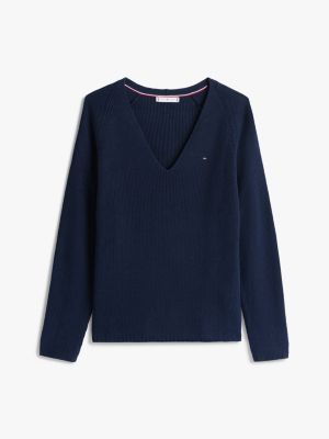 • Damen Pullover V-Ausschnitt - 100% Baumwolle Langarm