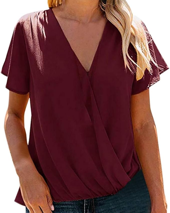 Damen T-Shirt Mit V-Ausschnitt - Twist Front Sommer Top 2025 In Verschiedenen Größen