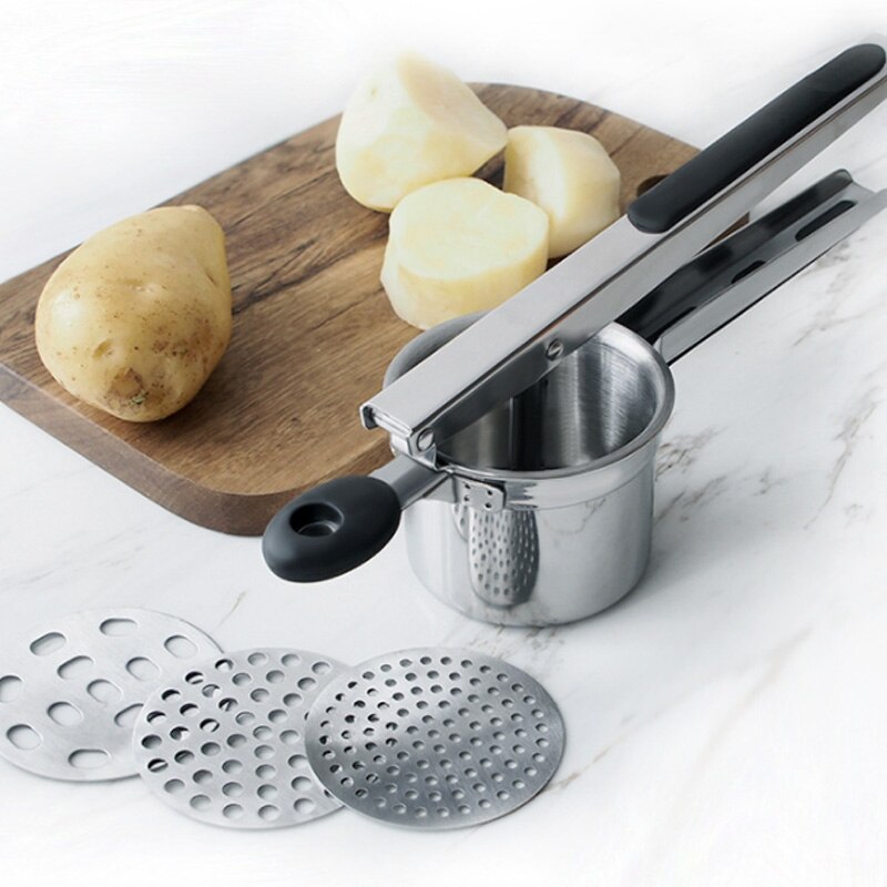 Echte Küchen-Hilfe für cremige Pürees und Säfte! Diese robuste Presse aus Edelstahl macht aus Kartoffeln, Gemüse und Obst im Handumdrehen feinstes Püree. Mit 3 austauschbaren Scheiben für verschiedene Konsistenzen - fein für Saucen, mittel für Püree, grob für dickere Passierten. Die doppelten hitzebeständigen Griffe geben sicheren Halt auch bei heißen Speisen. Der ergonomische Drehknopf liegt super in der Hand und reduziert Ermüdung. Perfekt für Babybrei, Suppen, Fruchtkompott oder Smoothies. Mit 38x19x8 cm kompakt und praktisch. Einfach zu reinigen und absolut lebensmittelecht. Professionelle Ergebnisse wie im Restaurant - aber ganz einfach zu Hause!