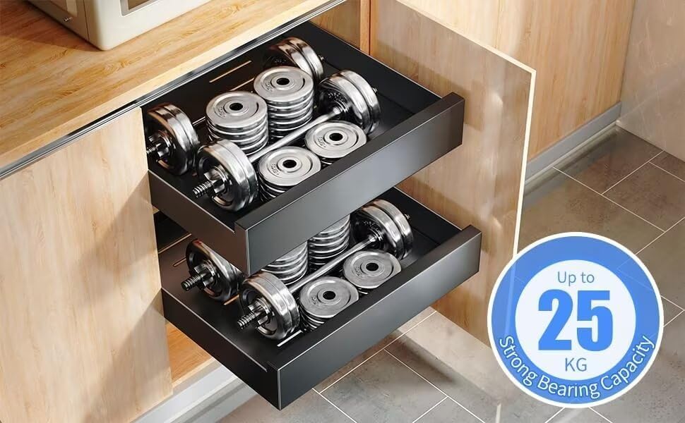 Hey Ordnungs-Fan! Dieser QQdou Schrank Organizer revolutioniert deine Küche. Maße: 25x43x7 cm - passt in fast jeden Schrank. Teleskop-System zieht sich komplett aus - du erreicht alles, sogar ganz hinten! Einfache Installation ohne Bohren: Einfach mit Klebetechnik befestigen - fertig in Minuten. Aus robustem Kohlenstoffstahl mit schwarzer Pulverbeschichtung - hält bis zu 25 kg! Super leises Gleitsystem - über 40.000 Öffnungen getestet. Perfekt für Gewürze, Konserven, Reinigungsmittel - was auch immer. Endlich keine vergessenen Vorräte mehr! Spart Zeit und Nerven beim Kochen. Mach deine Küche effizienter und ordentlicher - ohne Handwerker!