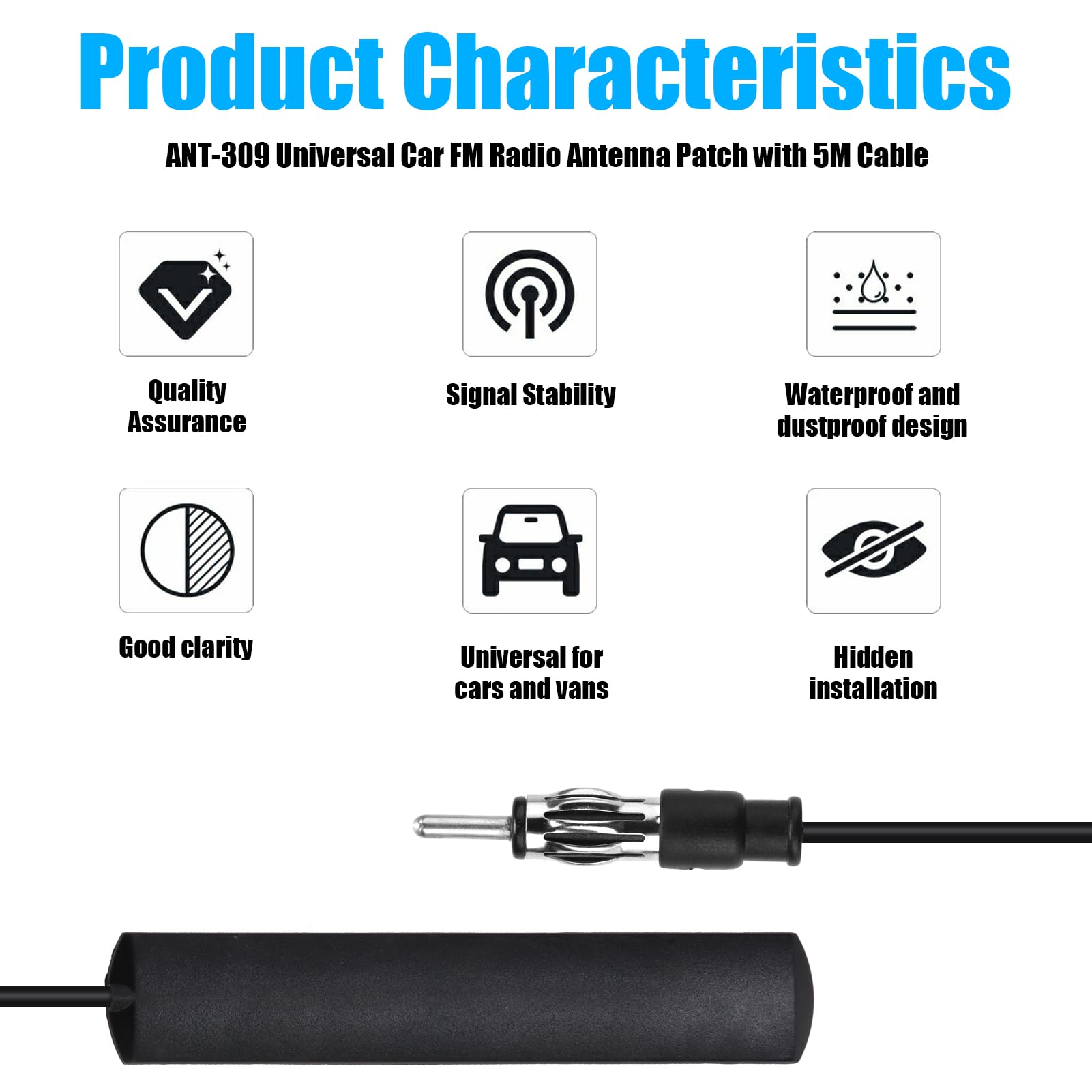 • Universal Auto Antenne FM - Windschutzscheiben Montage Mit 3m Kabel