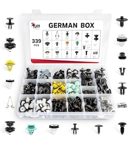 Nie wieder suchen! Dieses riesige 80-teilige Auto Clips Set hat alles, was du für Reparaturen brauchst. Enthält Spreizklammern, Flachkopfschrauben, Sechskantschrauben, Hitzeschild-Clips und U-förmige Clips in verschiedenen Größen. Aus robustem Kunststoff und stabilem Stahl - hält, was es verspricht. Die praktische Aufbewahrungsbox mit Fächern hilft dir, Ordnung zu halten. Perfekt für Türverkleidungen, Stoßstangen, Kotflügel und Motorhauben. Ob Profi oder Hobby-Schrauber - mit diesem Set bist du immer vorbereitet. Spart Zeit und Nerven bei jeder Reparatur!