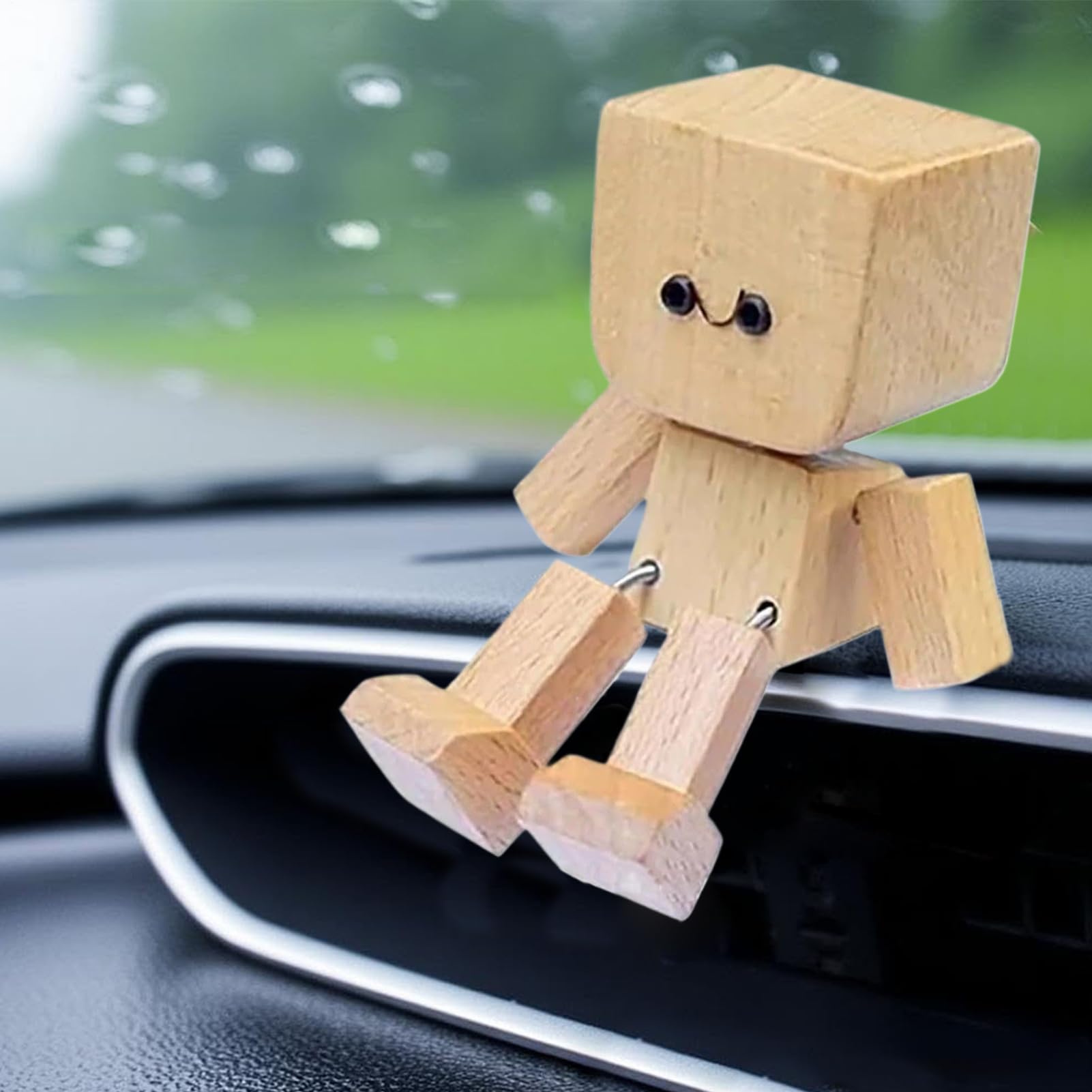Dieser niedliche wackelnde Holzmann bringt Leben in dein Auto oder auf deinen Schreibtisch! Mit nur 6x3.7cm Größe passt er perfekt aufs Armaturenbrett, ohne die Sicht zu behindern. Die Füße sind so montiert, dass sie bei jeder Bewegung wippen - total witzig anzusehen!\\n\\nHandgefertigt aus natürlichem Holz mit abgerundeten Kanten. Super für lange Fahrten - da hat man wenigstens was zum Gucken. Aber auch auf dem Schreibtisch zu Hause oder im Büro macht er eine gute Figur.\\n\\nDas Holz stammt aus kontrollierten Waldbeständen - also nachhaltig und umweltfreundlich. Die Figur wiegt nur 40g und ist damit superleicht. Es gibt zwei Varianten: Ohne Deckel oder mit Deckel für Duftöle (Diffusor nicht im Lieferumfang).\\n\\nEin ideales Geschenk für Männer, Frauen, Väter oder Ehemänner - für jeden, der etwas humorvolle Deko mag. Bringt sofort gute Laune und ist ein echter Hingucker! Einfach hinstellen und sich über das wippende Männchen freuen.