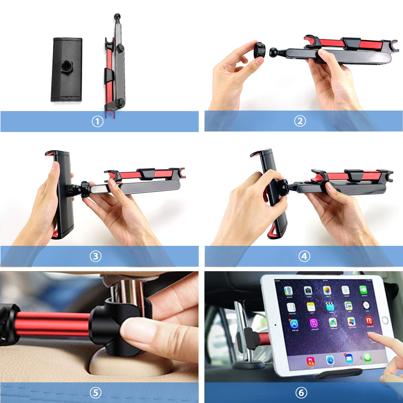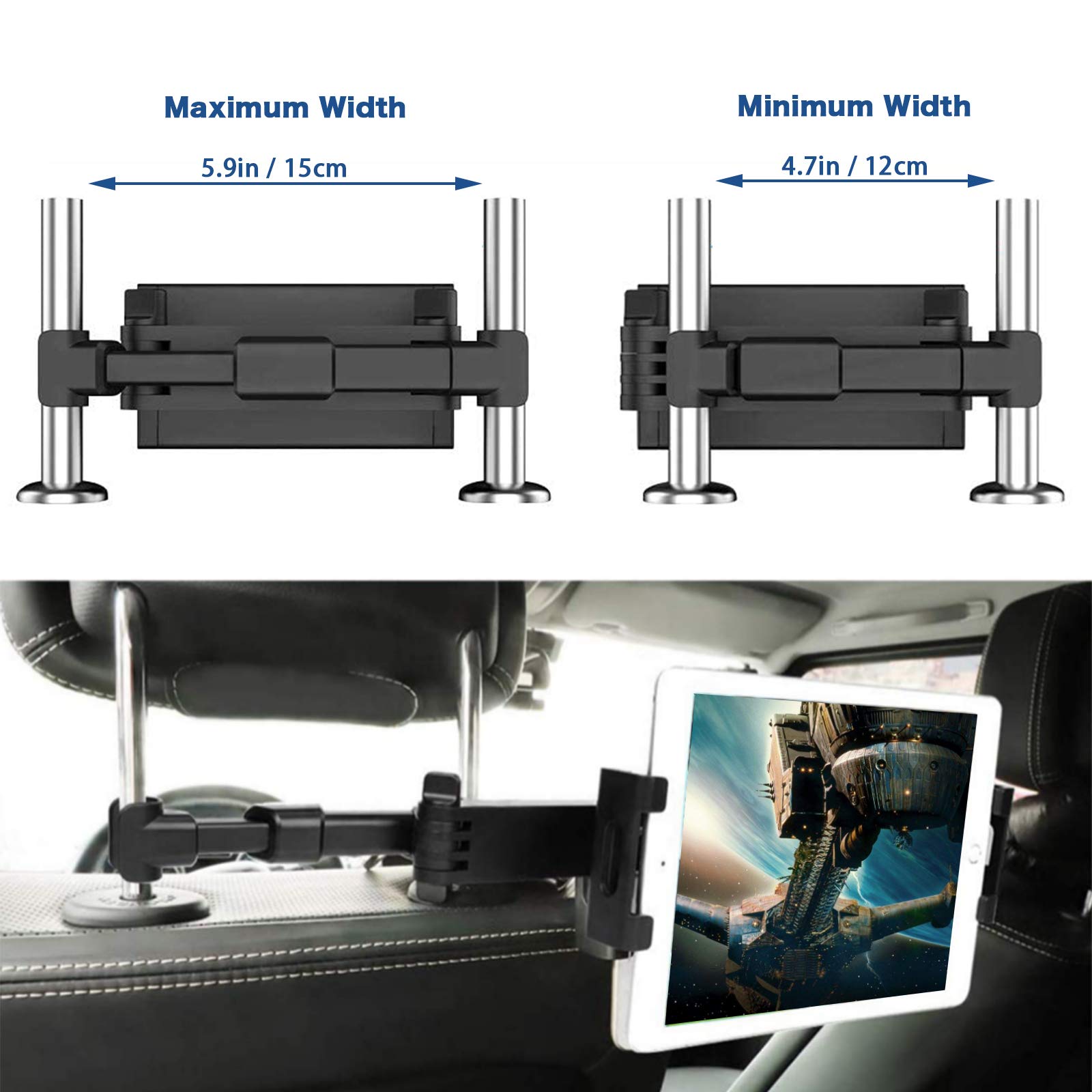 Nie wieder langweilige Autofahrten! Diese Tablet-Halterung für die Kopfstütze passt auf Geräte von 4,7 bis 12,9 Zoll - also fast alles von Smartphone bis iPad Pro. Einfache Installation ohne Werkzeug, einfach an den Kopfstützenpfosten klemmen. 360° drehbar für den perfekten Betrachtungswinkel, ausziehbar bis 10,6 Zoll. Aus Aluminium und ABS, mit weichem Schutz gegen Kratzer. Super für lange Fahrten, damit die Mitfahrer Filme schauen oder spielen können. Auch zum Laden geeignet. Mach deine Autofahrten unterhaltsamer!