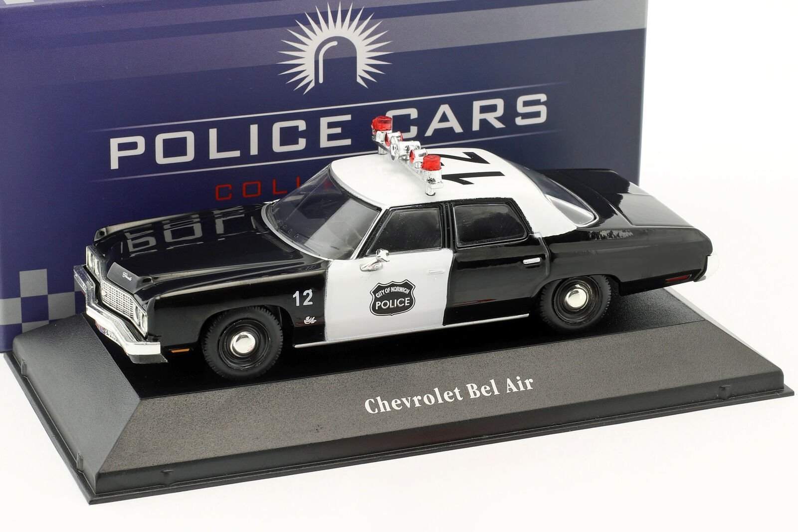 Wow, dieses Polizeiauto-Modell ist ein echter Hingucker! Ein Chevrolet Bel Air als Polizeiwagen - einfach kultig!\n\nDas Modell ist im Maßstab 1:43 und etwa 13 cm lang. Hergestellt aus Metall mit Kunststoffteilen, fühlt es sich richtig wertig an.\n\nEs kommt in einer stylischen Verpackung mit abnehmbarem Sockel - perfekt zum Ausstellen. Ob im Regal, auf dem Schreibtisch oder in der Vitrine - es sieht überall super aus.\n\nFür Auto-Fans, Modellbau-Sammler oder einfach alle, die coole Polizeiautos mögen. Das Detailreichtum ist echt beeindruckend!\n\nEin tolles Geschenk für jeden, der sich für klassische Autos oder Polizeifahrzeuge interessiert. Absolute Empfehlung!