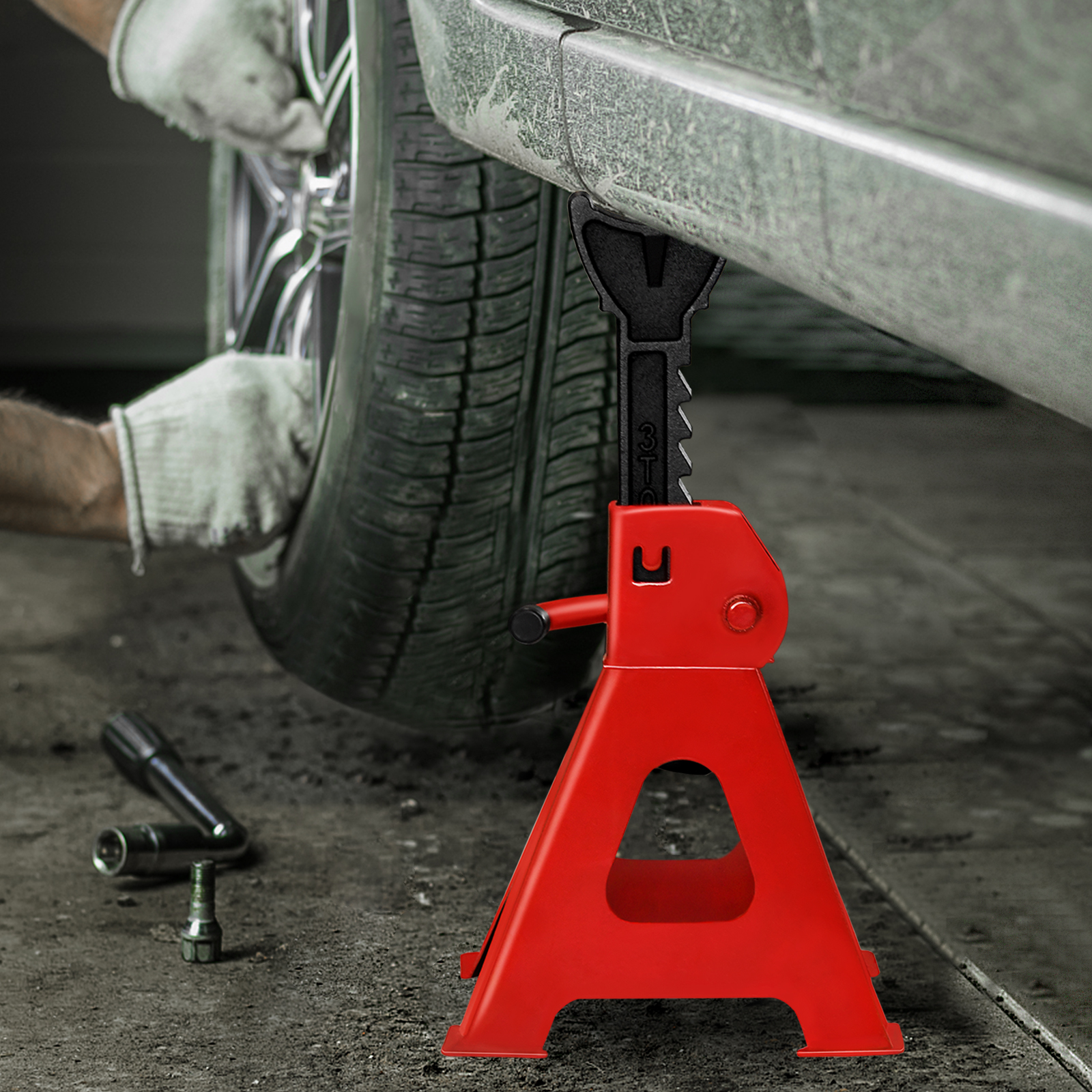 ECUTEE 4x Unterstellböcke 3t Höhenverstellbar - Auto Stützböcke 275-415mm Für Werkstatt