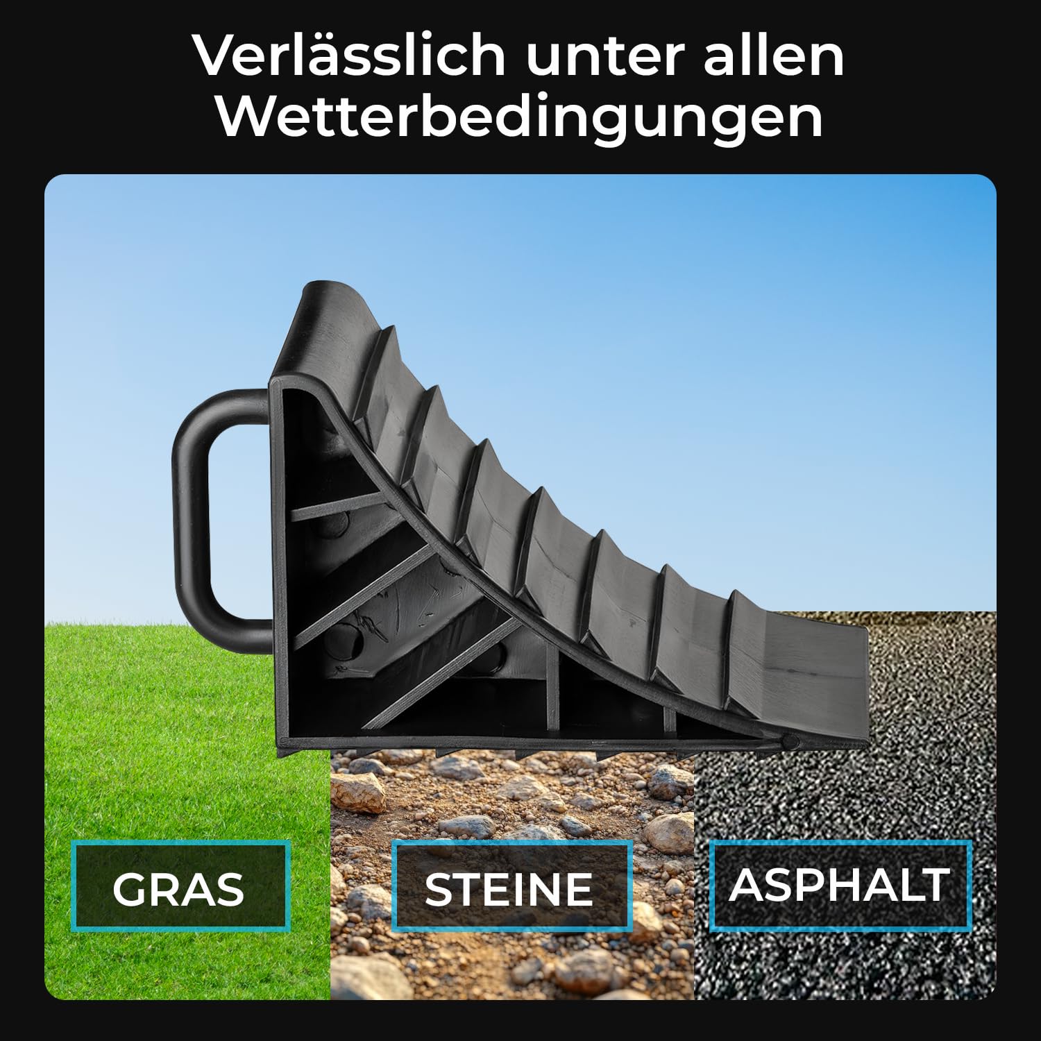 Sicherheit geht vor! Diese praktischen Unterlegkeile verhindern das Wegrollen deines Fahrzeugs. Im 2er-Set mit den Maßen 15,5x9x9,8cm aus robustem ABS-Kunststoff. Die dreieckige Form mit gerippter Unterseite sorgt für maximalen Halt auf jedem Untergrund. Perfekt für Autos, Wohnmobile, Anhänger und Motorräder - ob beim Parken, Reifenwechsel oder Reparaturen. Mit praktischem Handgriff für einfaches Handling. Leicht und kompakt, passen sie in jedes Fahrzeug. Nie wieder Sorgen um wegrollende Fahrzeuge - einfach hinter die Reifen schieben und entspannen!